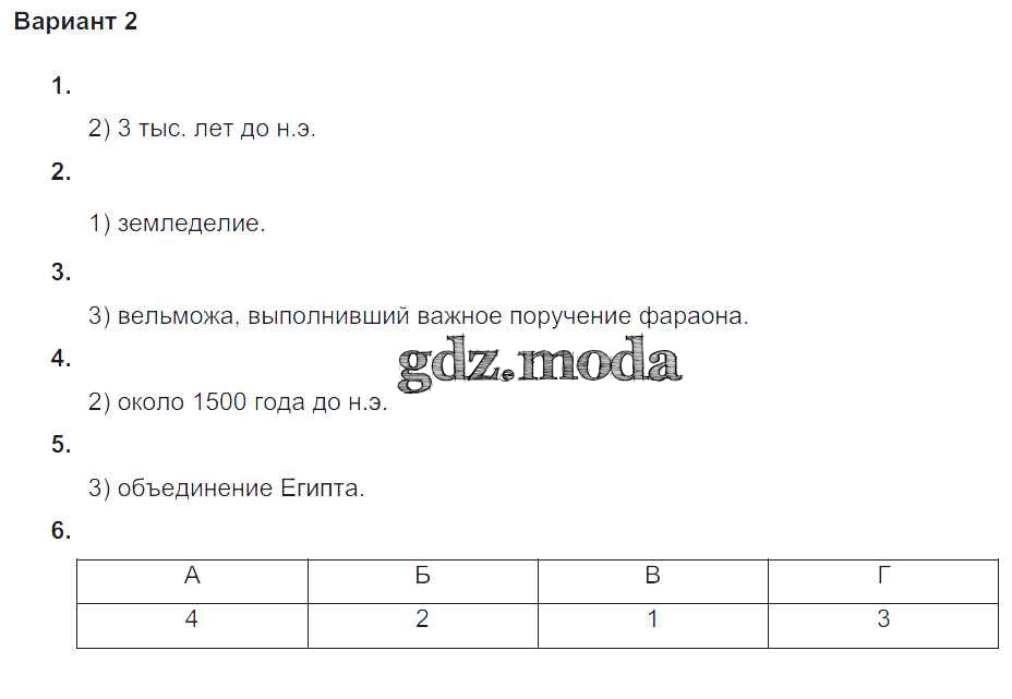 ГДЗ решение к заданию № Вариант №2 Всеобщая история Древнего мира 5 класс проверочные и контрольные работы Крючкова Е.А. Просвещение 2015 ФГОС бесплатно на гдз.мода!