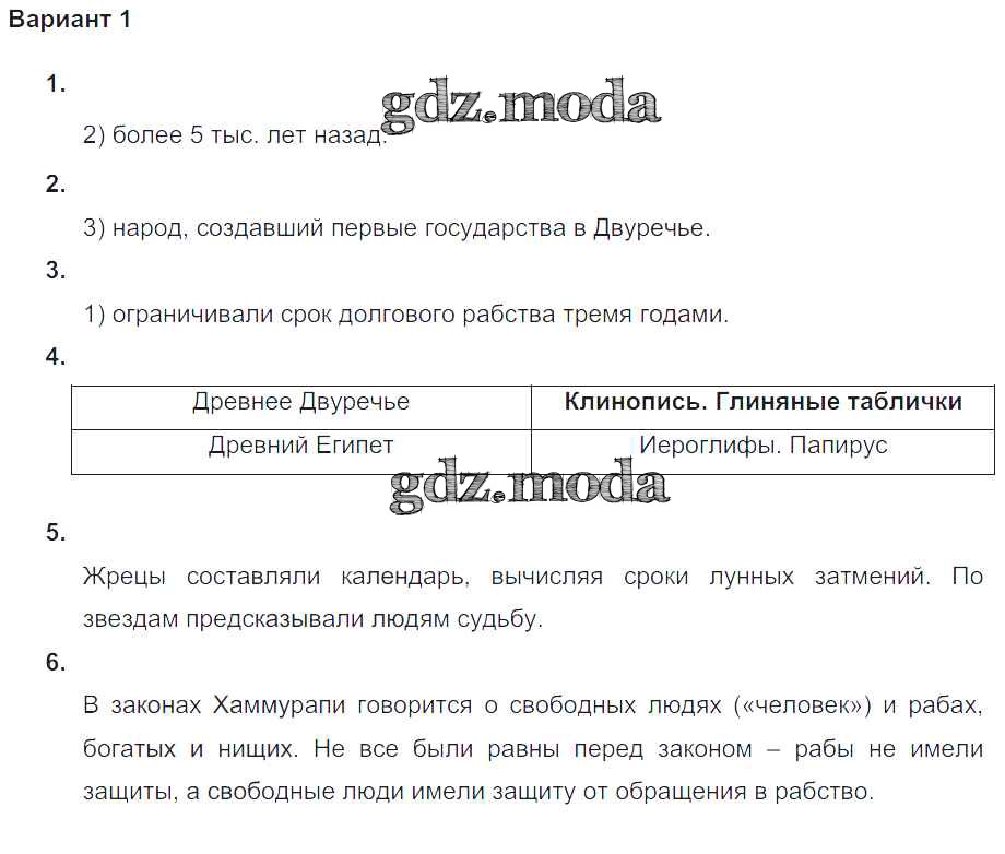 ГДЗ решение к заданию № Вариант №1 Всеобщая история Древнего мира 5 класс проверочные и контрольные работы Крючкова Е.А. Просвещение 2015 ФГОС бесплатно на гдз.мода!