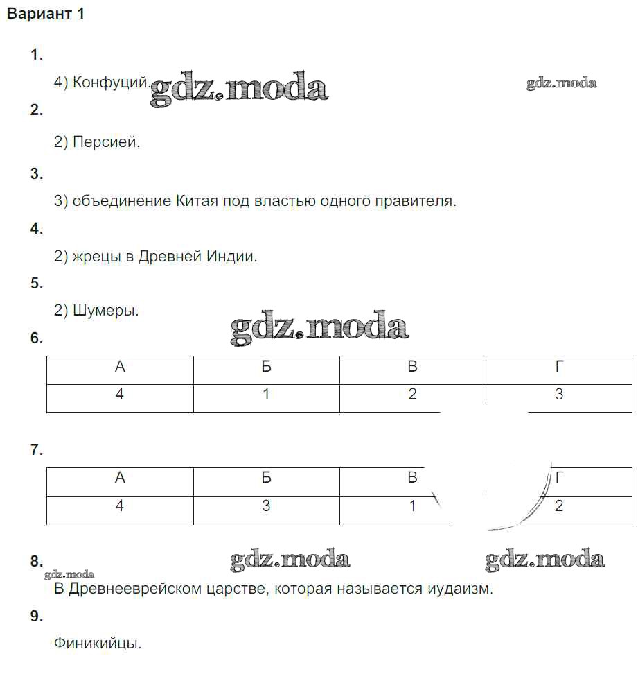 ГДЗ решение к заданию № Вариант №1 Всеобщая история Древнего мира 5 класс проверочные и контрольные работы Крючкова Е.А. Просвещение 2015 ФГОС бесплатно на гдз.мода!