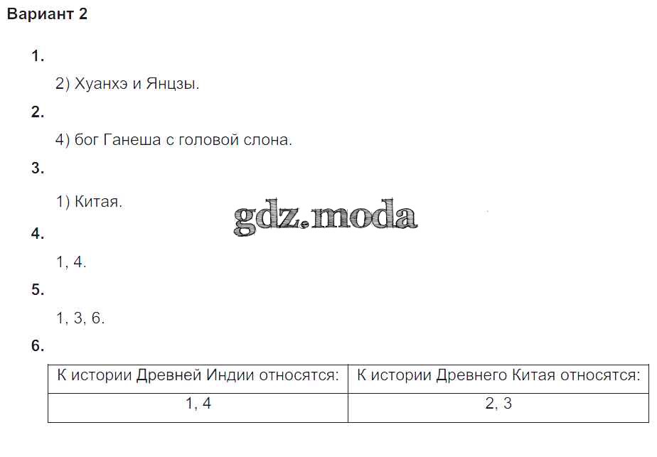 ГДЗ решение к заданию № Вариант №2 Всеобщая история Древнего мира 5 класс проверочные и контрольные работы Крючкова Е.А. Просвещение 2015 ФГОС бесплатно на гдз.мода!