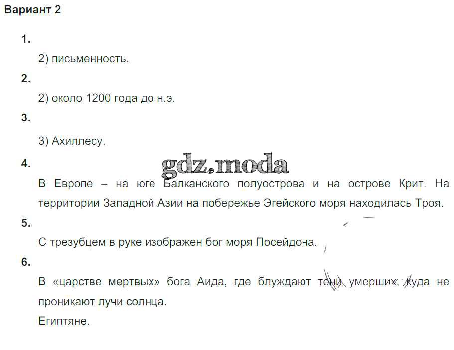 ГДЗ решение к заданию № Вариант №2 Всеобщая история Древнего мира 5 класс проверочные и контрольные работы Крючкова Е.А. Просвещение 2015 ФГОС бесплатно на гдз.мода!