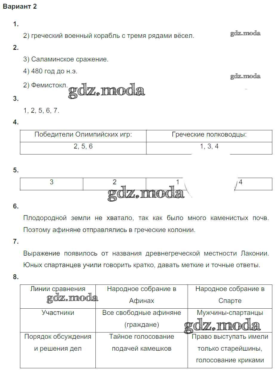 ГДЗ решение к заданию № Вариант №2 Всеобщая история Древнего мира 5 класс проверочные и контрольные работы Крючкова Е.А. Просвещение 2015 ФГОС бесплатно на гдз.мода!