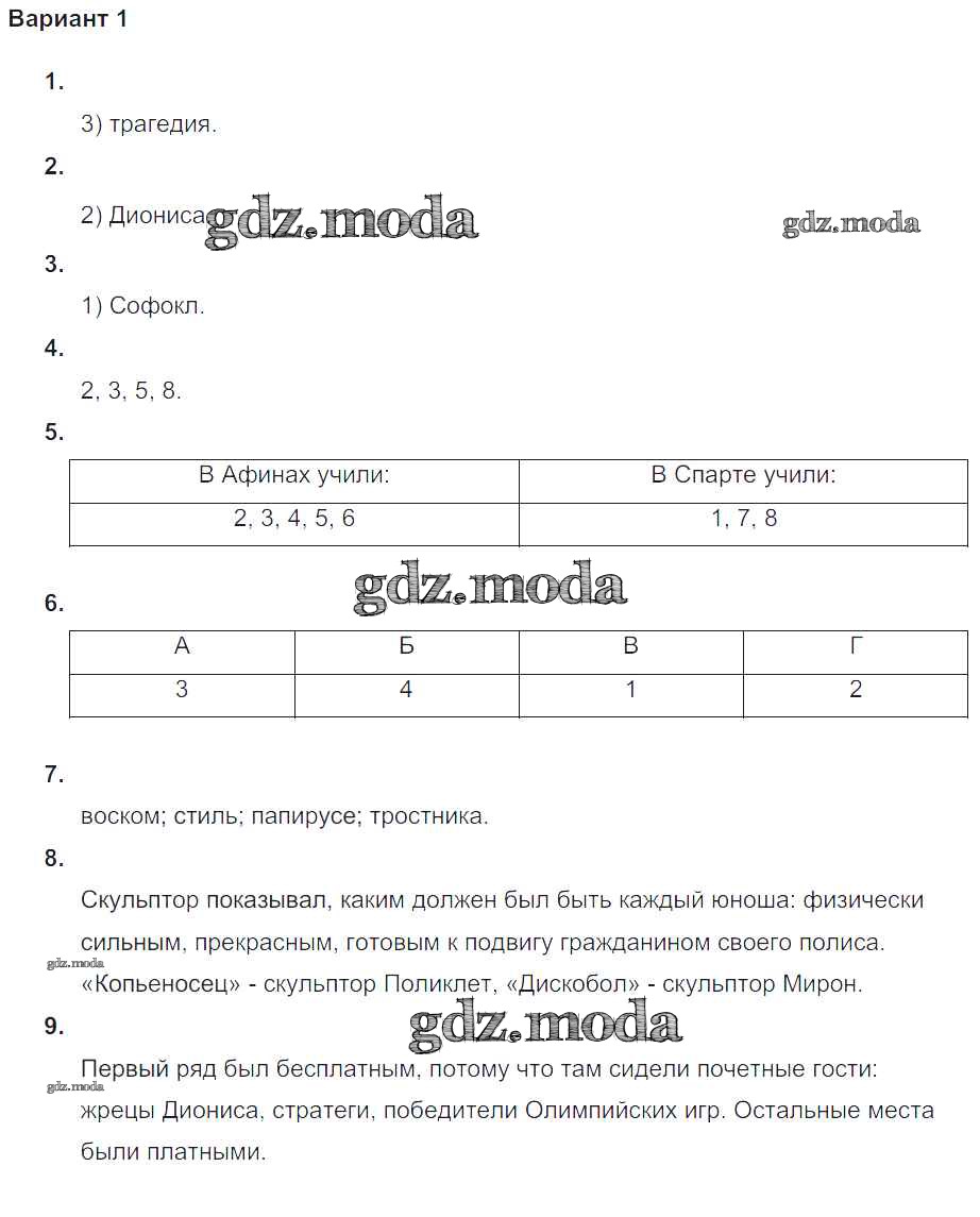 ГДЗ решение к заданию № Вариант №1 Всеобщая история Древнего мира 5 класс проверочные и контрольные работы Крючкова Е.А. Просвещение 2015 ФГОС бесплатно на гдз.мода!