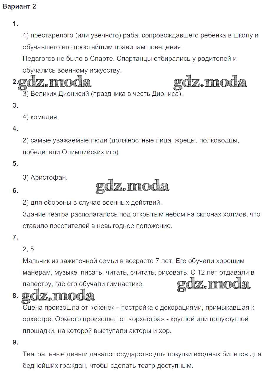 ГДЗ решение к заданию № Вариант №2 Всеобщая история Древнего мира 5 класс проверочные и контрольные работы Крючкова Е.А. Просвещение 2015 ФГОС бесплатно на гдз.мода!