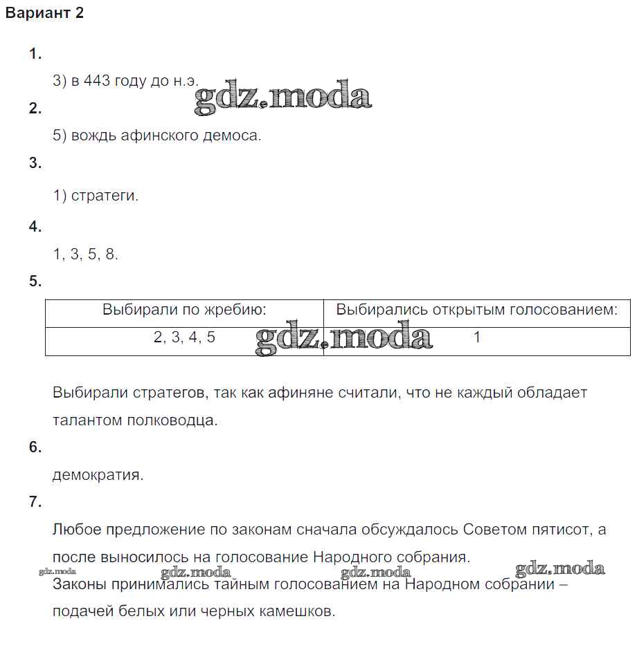 ГДЗ решение к заданию № Вариант №2 Всеобщая история Древнего мира 5 класс проверочные и контрольные работы Крючкова Е.А. Просвещение 2015 ФГОС бесплатно на гдз.мода!