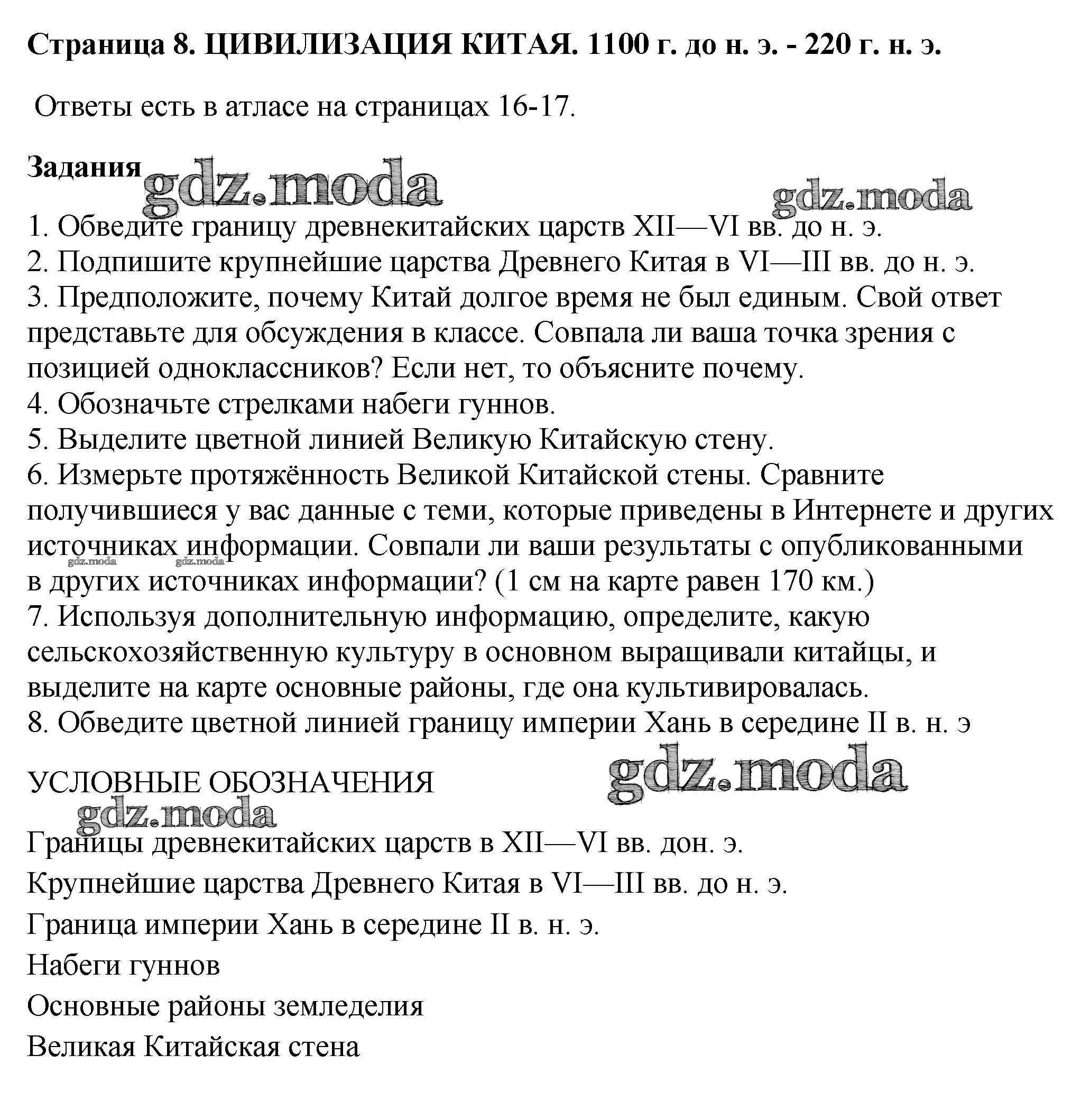 ГДЗ решение к заданию № 8 История Древнего Мира 5 класс Контурные карты Курбский Н. А. Дрофа 2019 ФГОС бесплатно на гдз.мода!