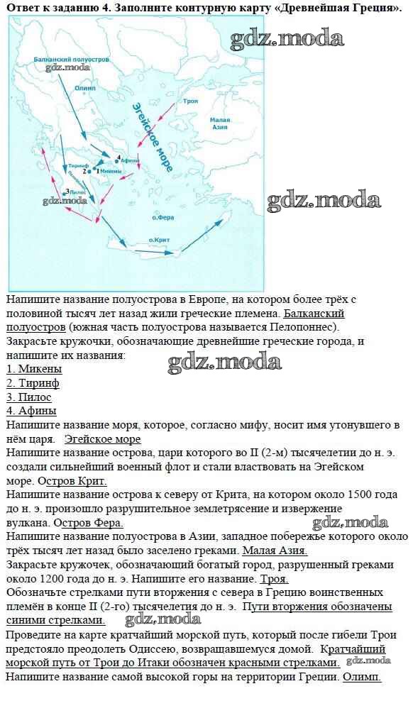 ГДЗ решение к заданию № 4 Всеобщая история 5 класс рабочая тетрадь Годер Г.И. Просвещение 2017 Часть 1, Часть 2 ФГОС бесплатно на гдз.мода!