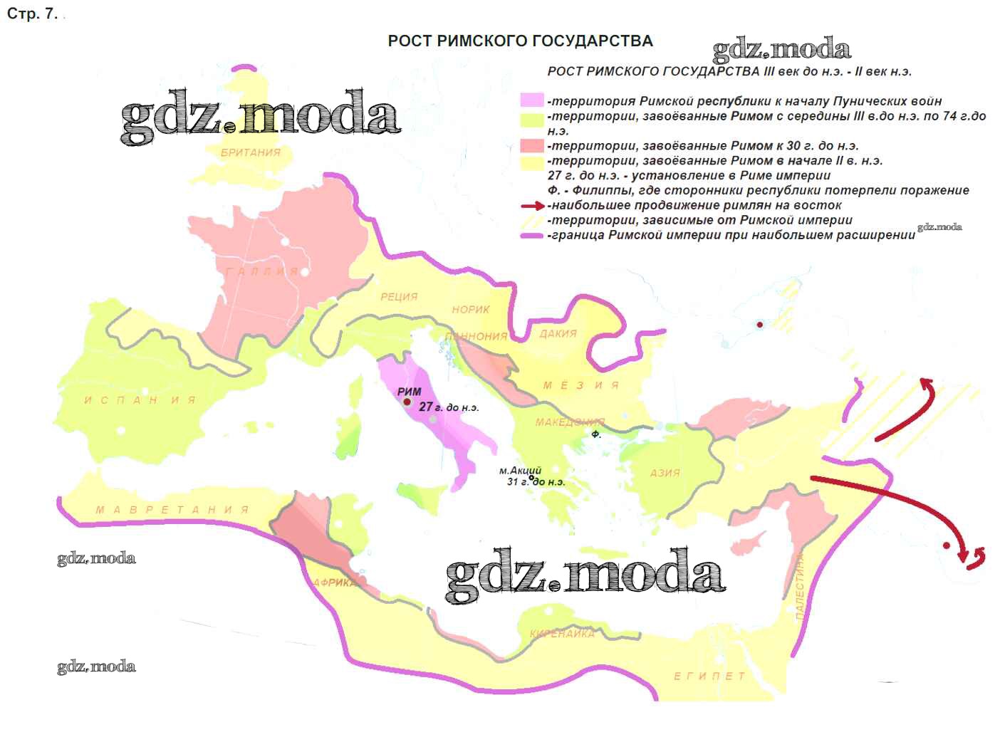 ГДЗ решение к заданию № стр.7. Рост Римского государства История История Древнего мира 5 класс Атлас с комплектом контурных карт Стоялова Н.Д. ФГУП Омская картографическая фабрика 2019 ФГОС бесплатно на гдз.мода!