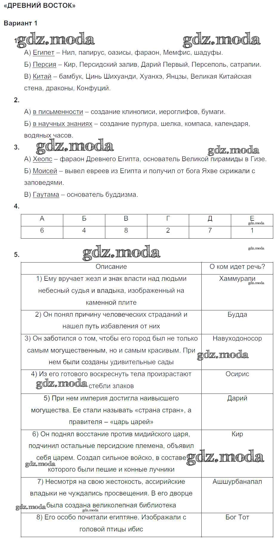 ГДЗ решение к заданию № вариант №1 Всеобщая История 5 класс Тематический контроль Саплина Е.В. Национальное образование 2016 ФГОС бесплатно на гдз.мода!