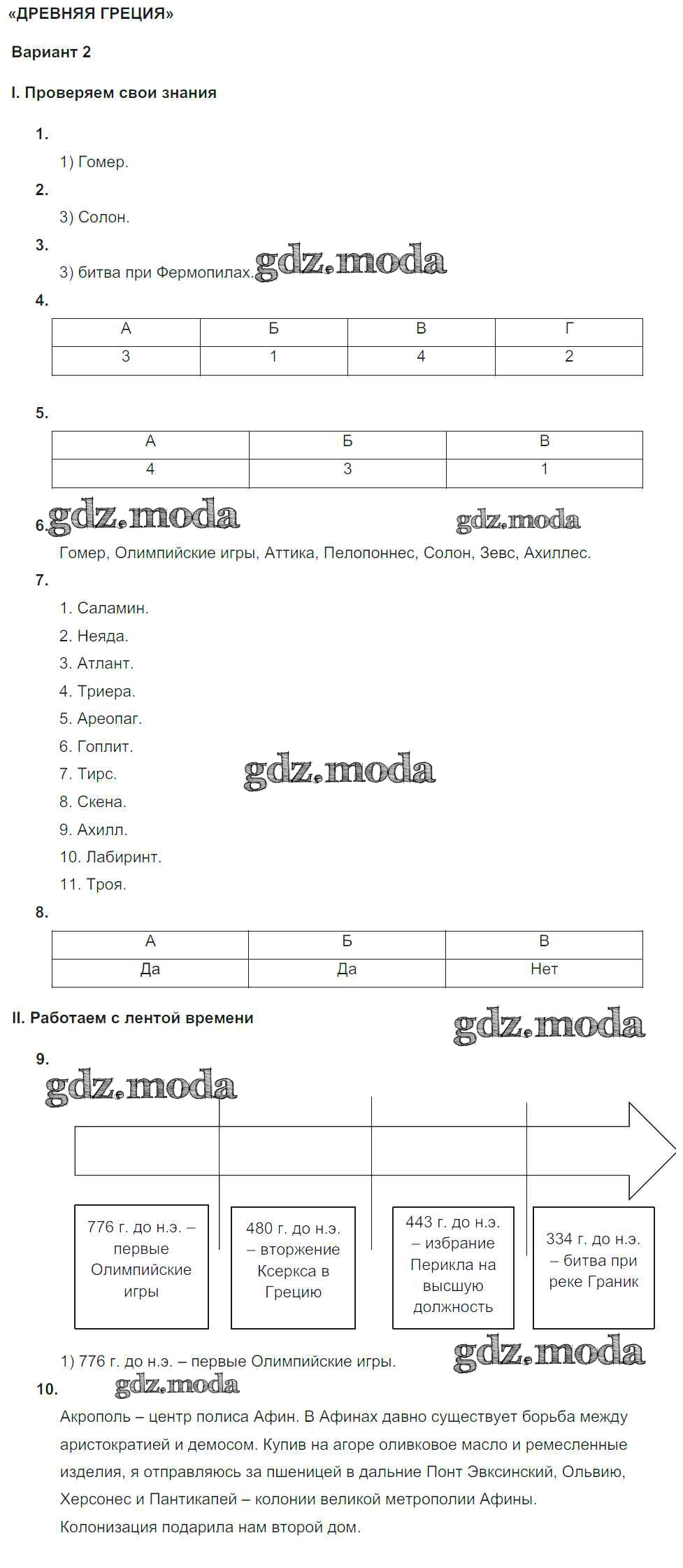 ГДЗ решение к заданию № вариант №2 Всеобщая История 5 класс Тематический контроль Саплина Е.В. Национальное образование 2016 ФГОС бесплатно на гдз.мода!