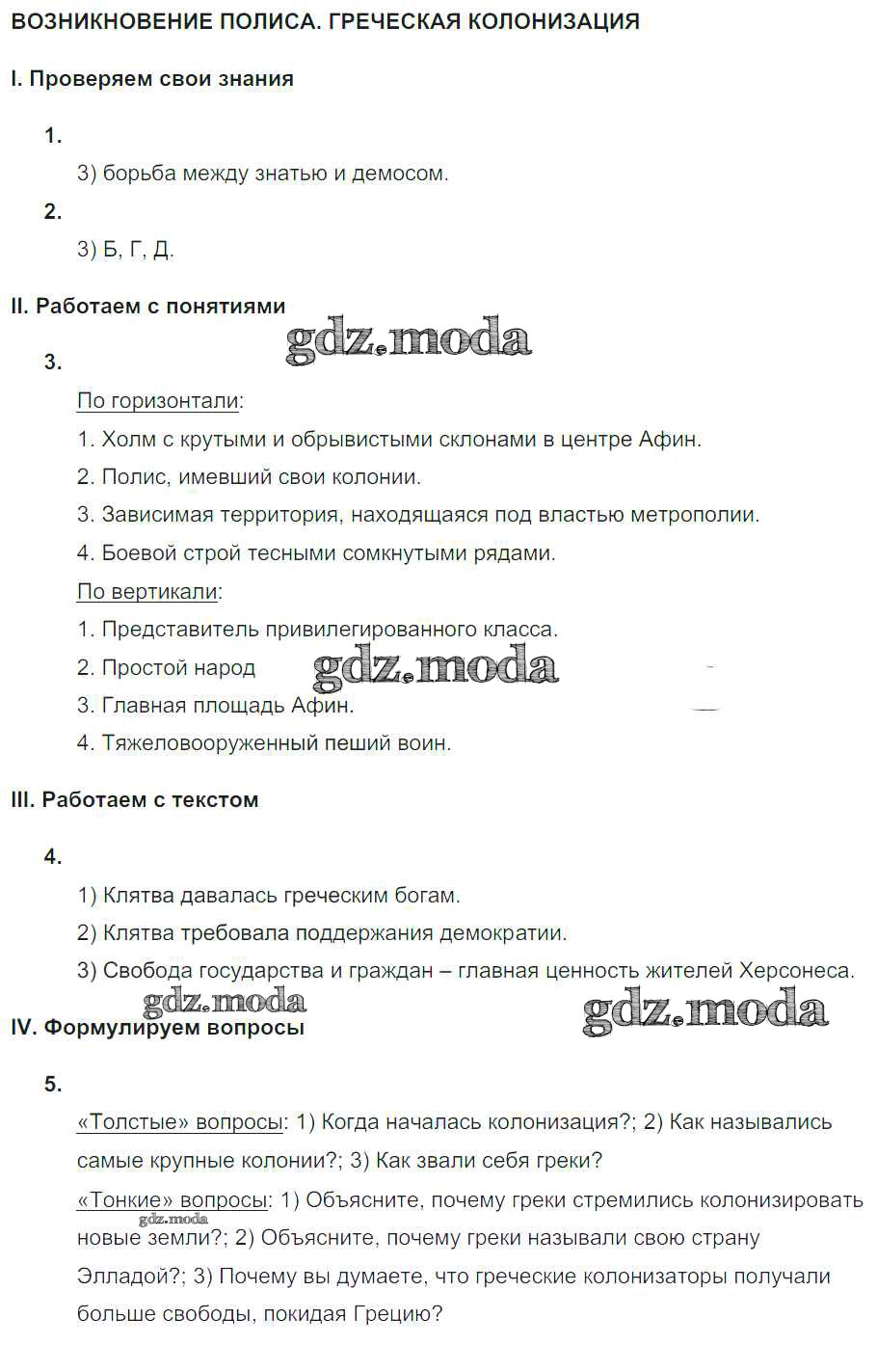 ГДЗ решение к заданию № СР №12. Возникновение полиса. Греческая колонизация Всеобщая История 5 класс Тематический контроль Саплина Е.В. Национальное образование 2016 ФГОС бесплатно на гдз.мода!