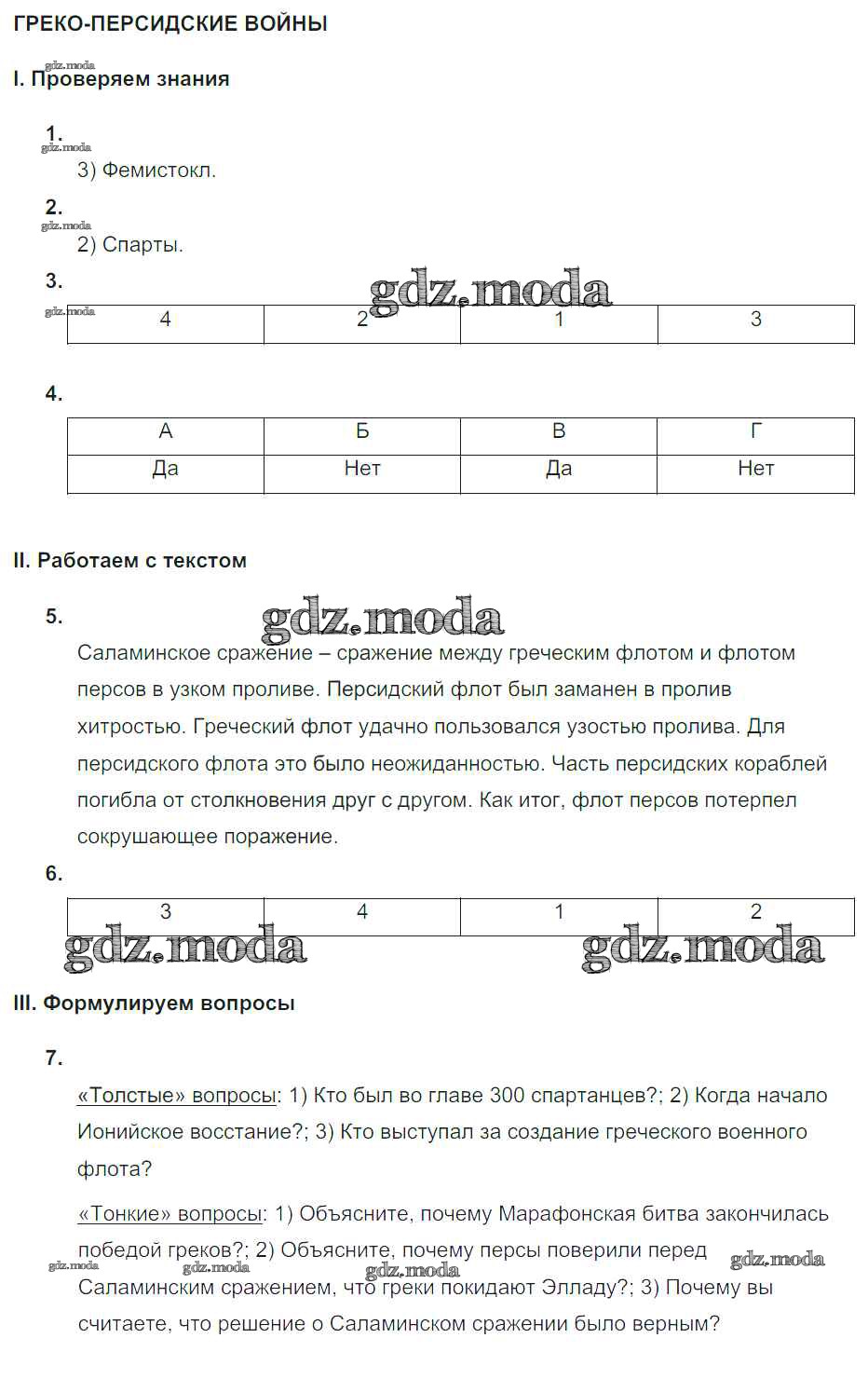 ОТВЕТ на задание № СР №15. Греко-персидские войны Тематический контроль по Истории 5 класс Саплина