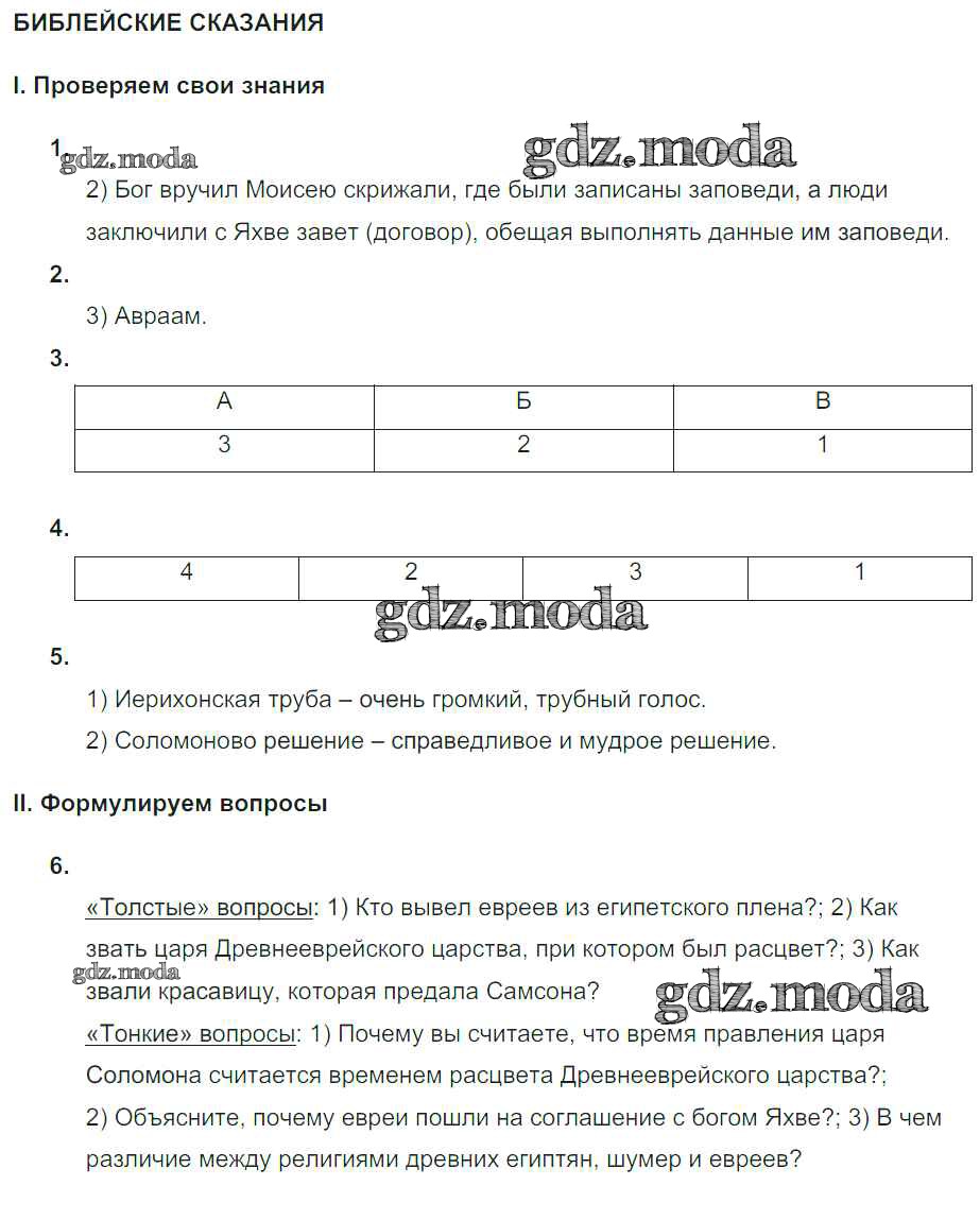 ГДЗ решение к заданию № СР №6. Библейские сказания Всеобщая История 5 класс Тематический контроль Саплина Е.В. Национальное образование 2016 ФГОС бесплатно на гдз.мода!