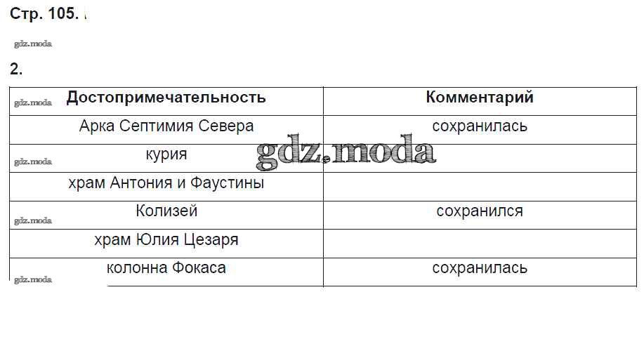 ГДЗ решение к заданию № 105 История Древнего мира 5 класс рабочая тетрадь Ванина Э.В. Вентана-граф 2015 ФГОС бесплатно на гдз.мода!