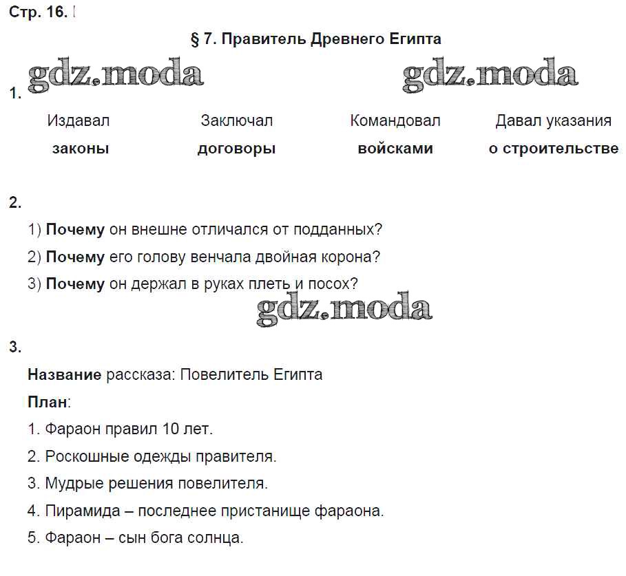 ГДЗ решение к заданию № 16 История Древнего мира 5 класс рабочая тетрадь Ванина Э.В. Вентана-граф 2015 ФГОС бесплатно на гдз.мода!