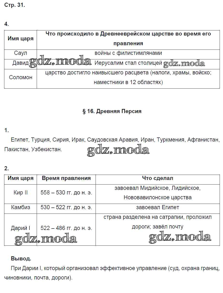 ГДЗ решение к заданию № 31 История Древнего мира 5 класс рабочая тетрадь Ванина Э.В. Вентана-граф 2015 ФГОС бесплатно на гдз.мода!