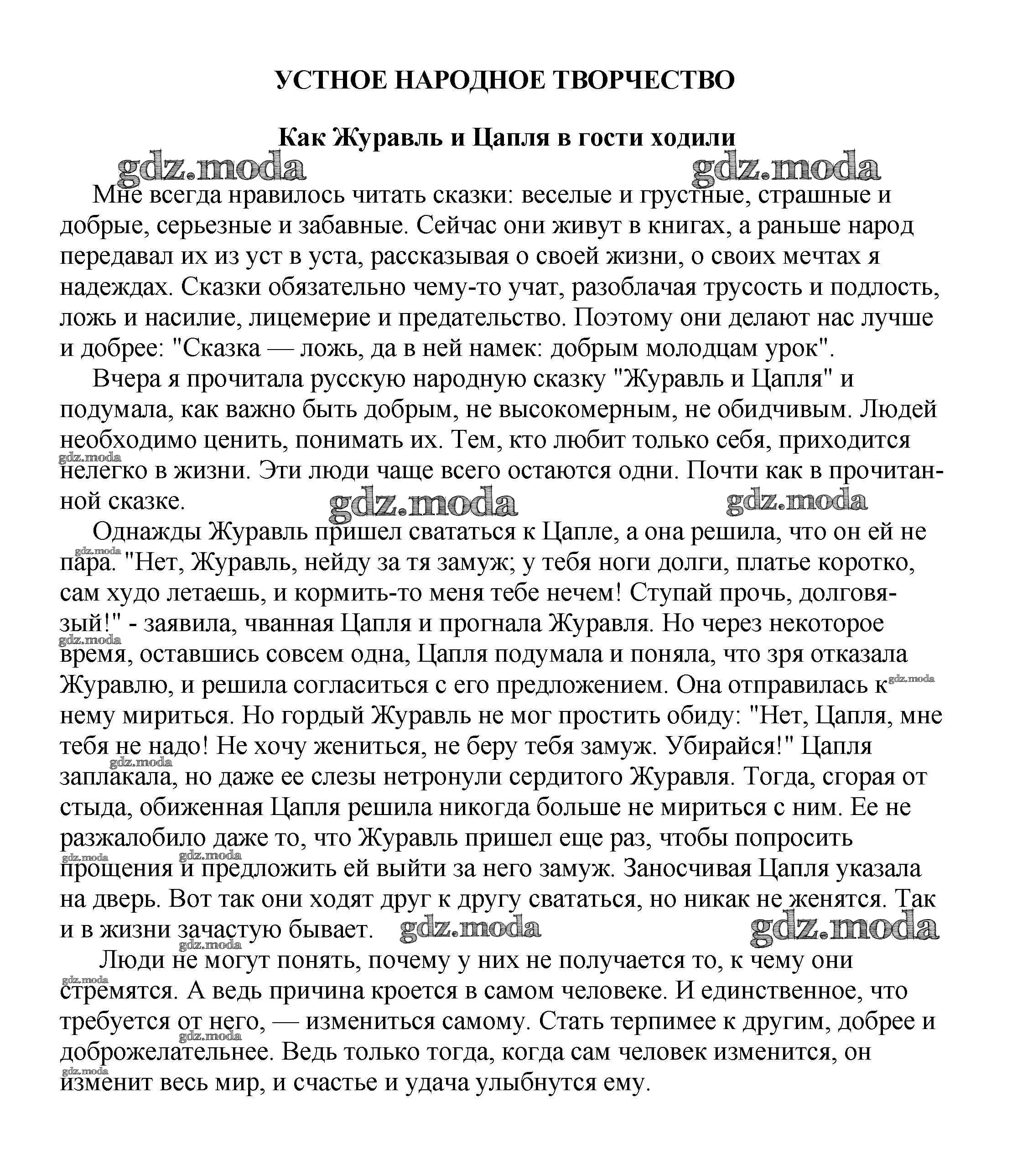 ГДЗ решение к заданию № Как Журавль и Цапля в гости ходили Сочинения по русской литературе, зарубежной литературе 5-10 классы Белик Э. В. Баро-Пресс 2017 бесплатно на гдз.мода!