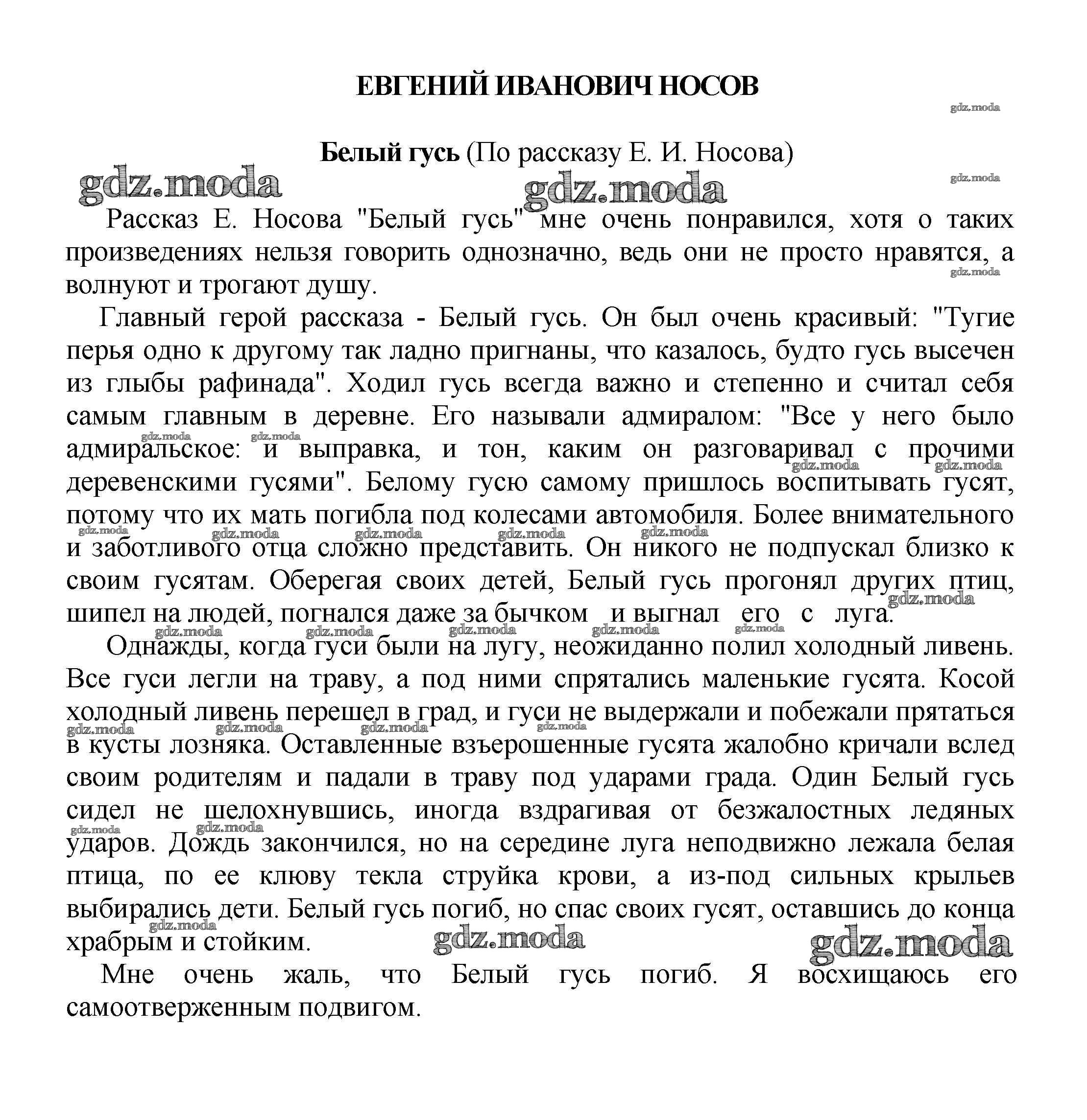 ГДЗ решение к заданию № Белый гусь (По рассказу Е. И. Носова) Сочинения по русской литературе, зарубежной литературе 5-10 классы Белик Э. В. Баро-Пресс 2017 бесплатно на гдз.мода!