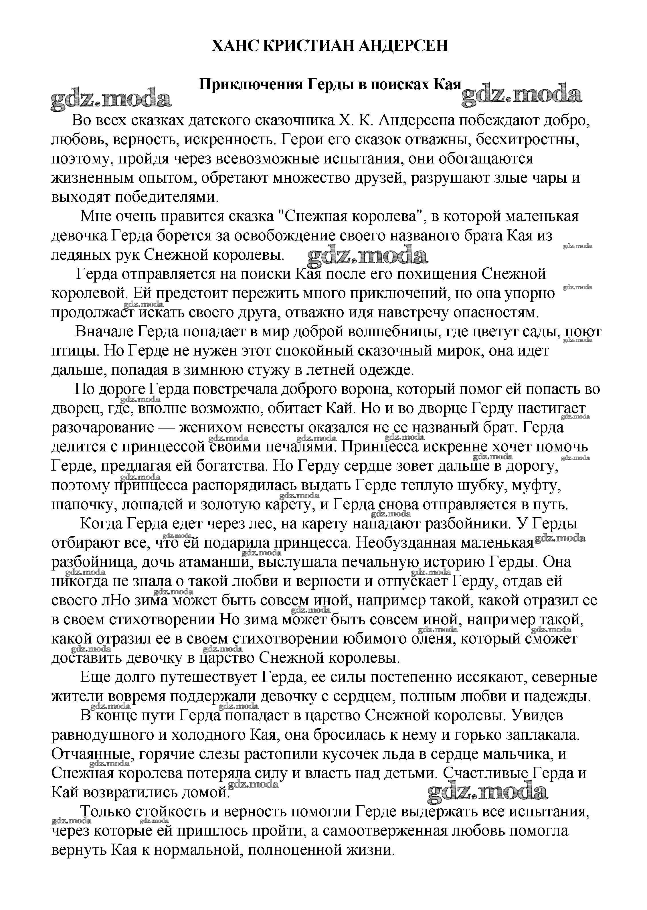 ОТВЕТ на задание № Приключения Герды в поисках Кая Сочинения по Литературе 5-10 класс Белик