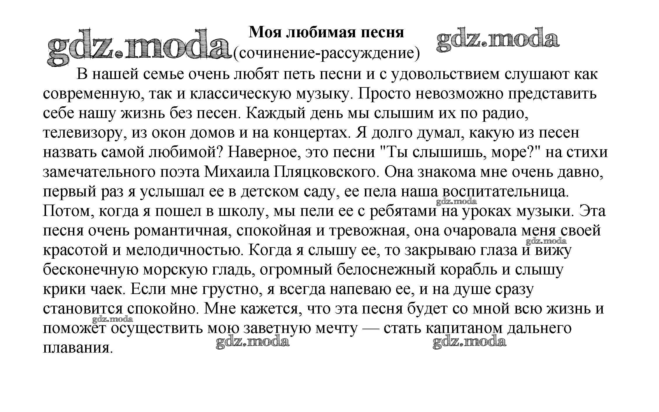 ОТВЕТ на задание № Моя любимая песня (сочинение-рассуждение) Сочинения по Литературе 5-10 класс Белик