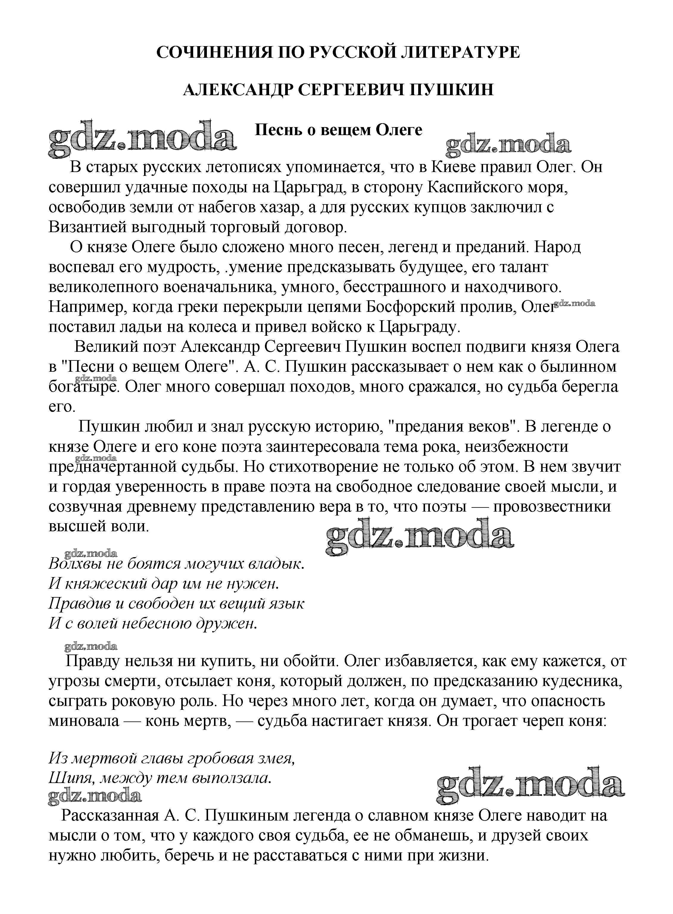 ОТВЕТ на задание № Песнь о вещем Олеге Сочинения по Литературе 5-10 класс Белик