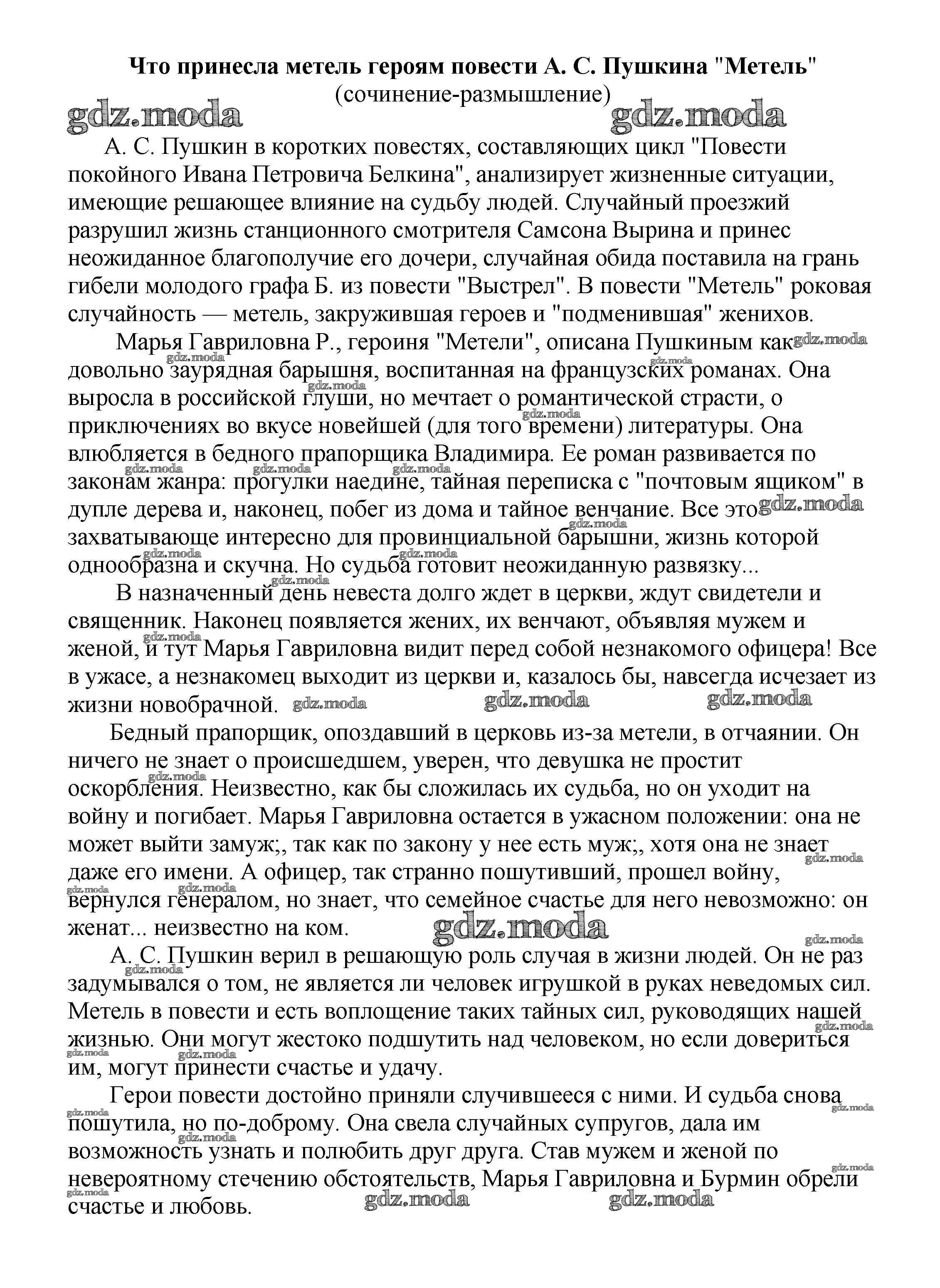 ОТВЕТ на задание № Что принесла метель героям повести А. С. Пушкина "Метель" (сочинение-размышление) Сочинения по Литературе 5-10 класс Белик