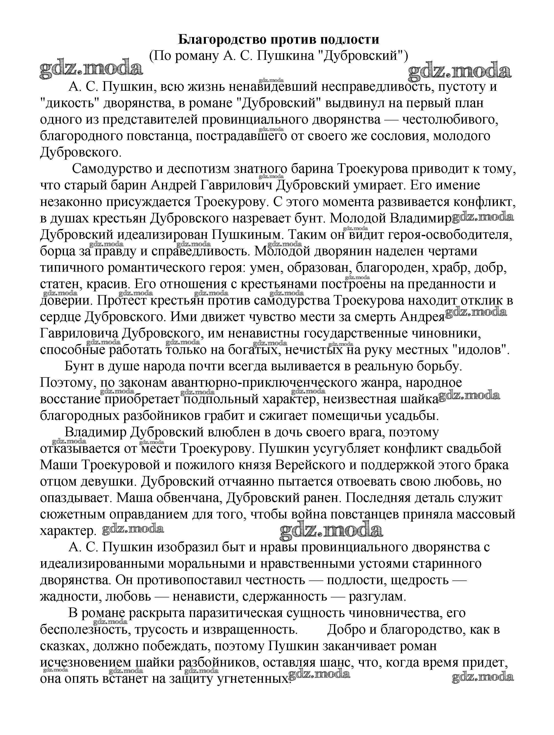 ГДЗ решение к заданию № Благородство против подлости (По роману А. С. Пушкина "Дубровский") Сочинения по русской литературе, зарубежной литературе 5-10 классы Белик Э. В. Баро-Пресс 2017 бесплатно на гдз.мода!