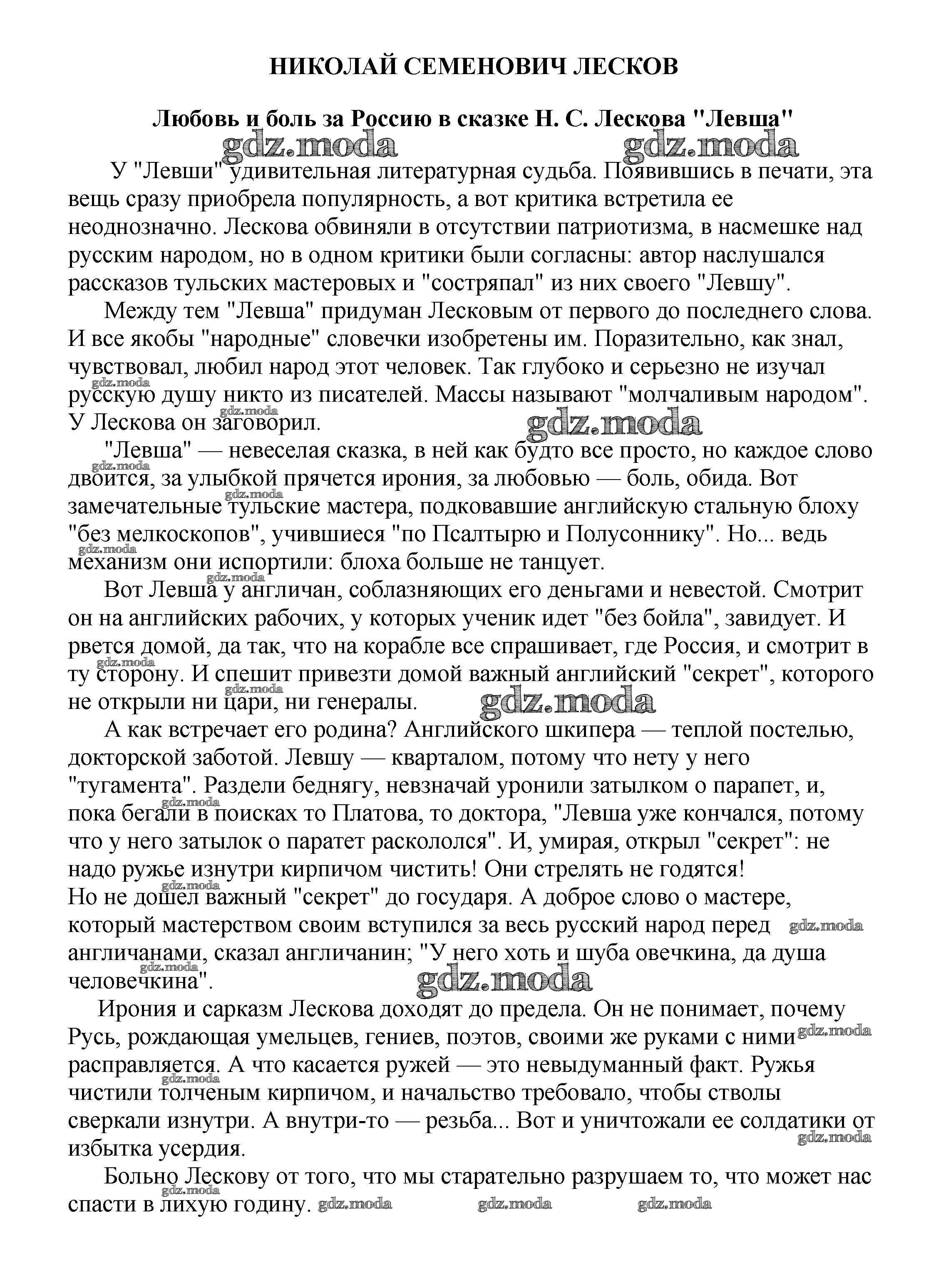 ОТВЕТ на задание № Любовь и боль за Россию в сказке Н. С. Лескова "Левша" Сочинения по Литературе 5-10 класс Белик