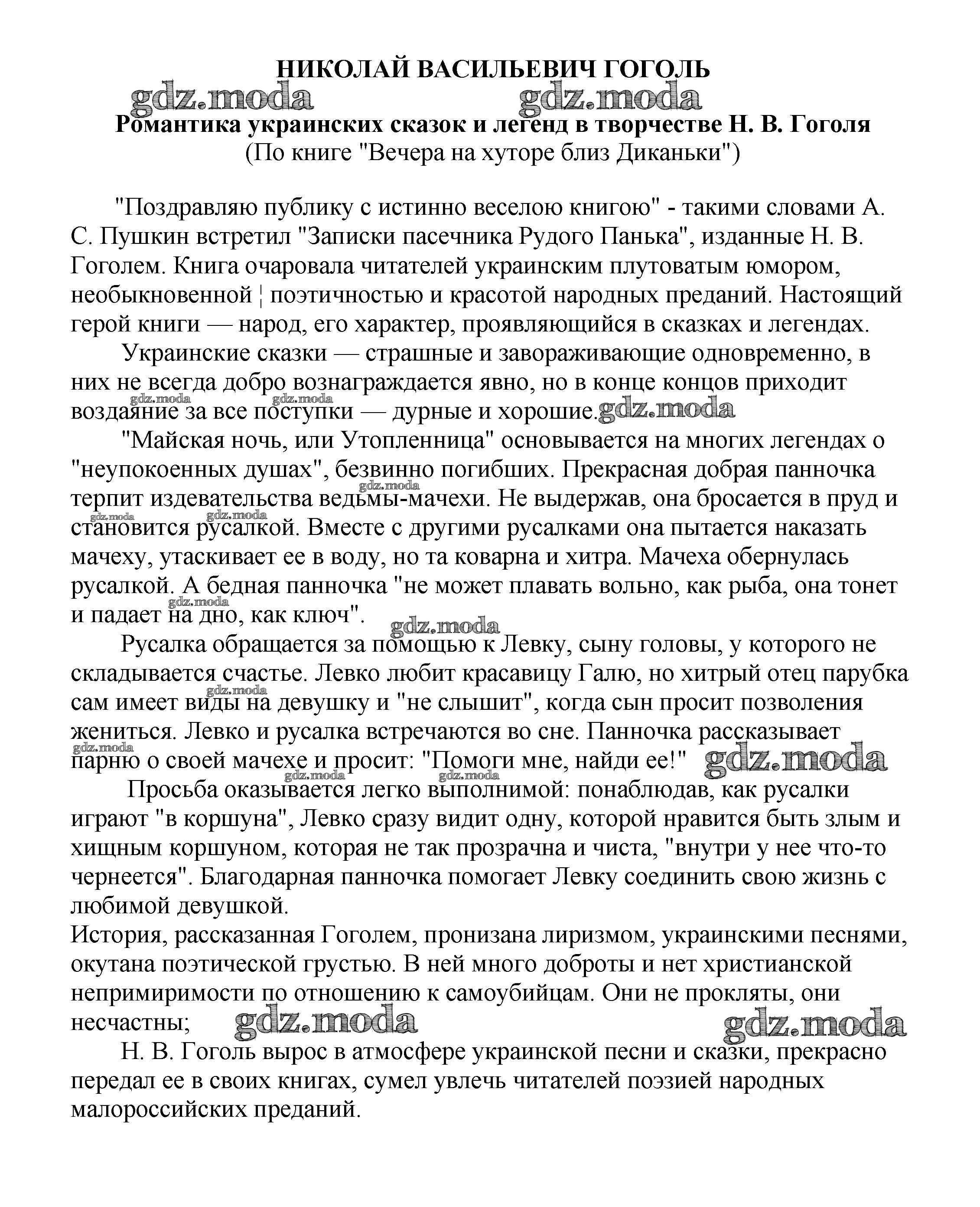 ГДЗ решение к заданию № Романтика украинских сказок и легенд в творчестве Н. В. Гоголя (По книге "Вечера на хуторе близ Диканьки") Сочинения по русской литературе, зарубежной литературе 5-10 классы Белик Э. В. Баро-Пресс 2017 бесплатно на гдз.мода!