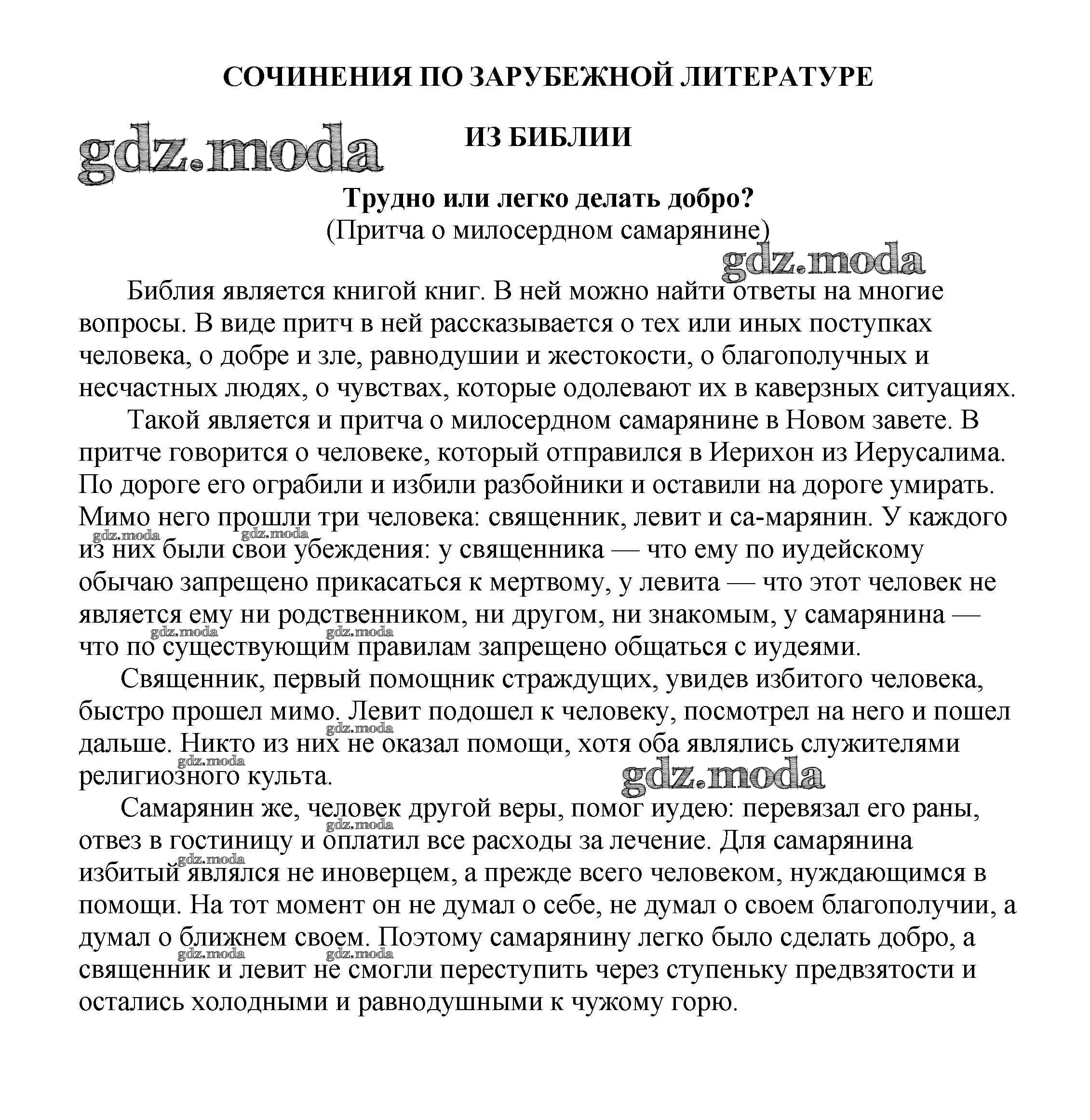 ГДЗ решение к заданию № Трудно или легко делать добро? (Притча о милосердном самарянине) Сочинения по русской литературе, зарубежной литературе 5-10 классы Белик Э. В. Баро-Пресс 2017 бесплатно на гдз.мода!
