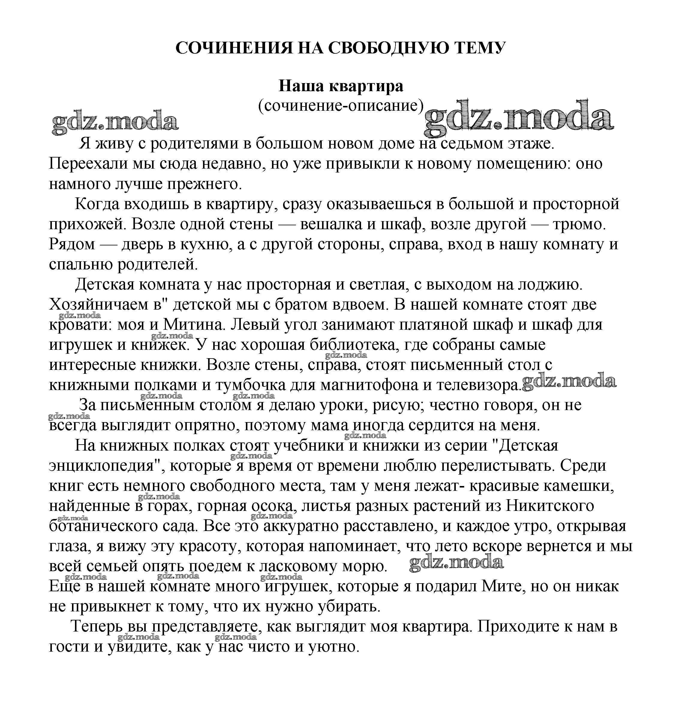ГДЗ решение к заданию № Наша квартира (сочинение-описание) Сочинения по русской литературе, зарубежной литературе 5-10 классы Белик Э. В. Баро-Пресс 2017 бесплатно на гдз.мода!