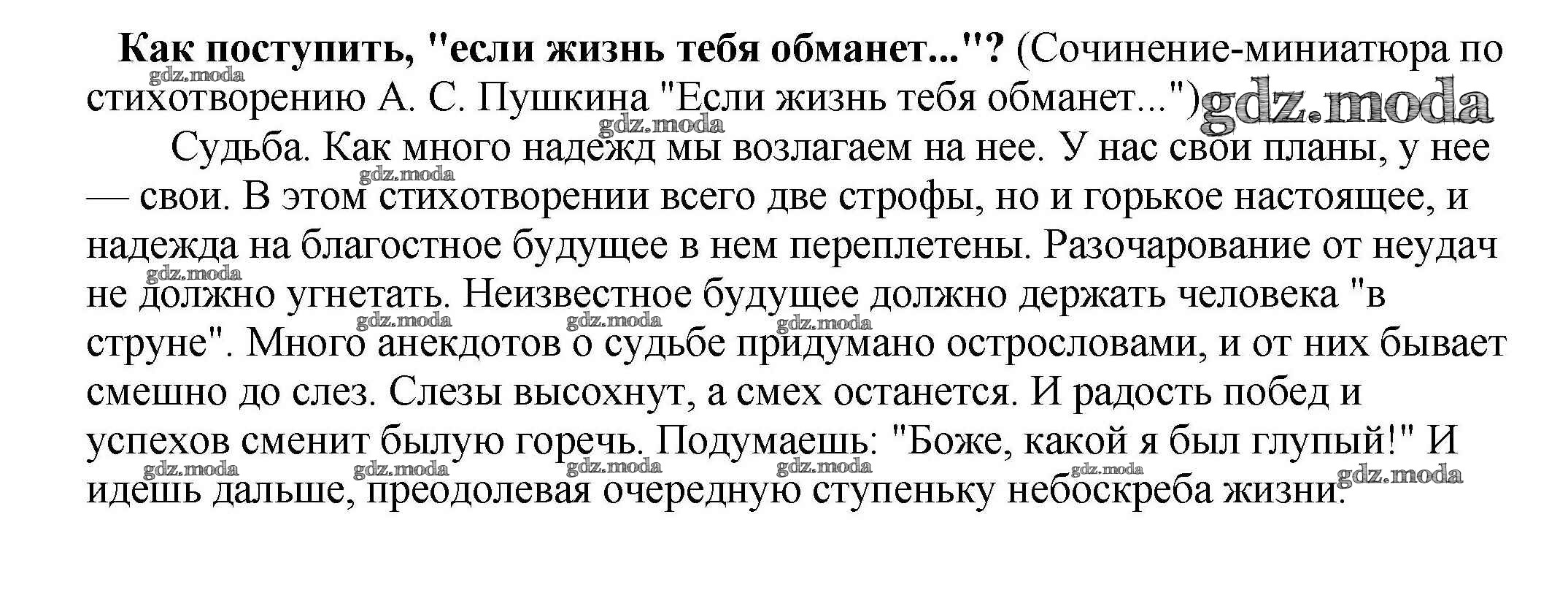 ГДЗ решение к заданию № Как поступить, "если жизнь тебя обманет..."? (Сочинение-миниатюра по стихотворению А. С. Пушкина "Если жизнь тебя обманет...") Сочинения по русской литературе, зарубежной литературе 5-10 классы Белик Э. В. Баро-Пресс 2017 бесплатно на гдз.мода!