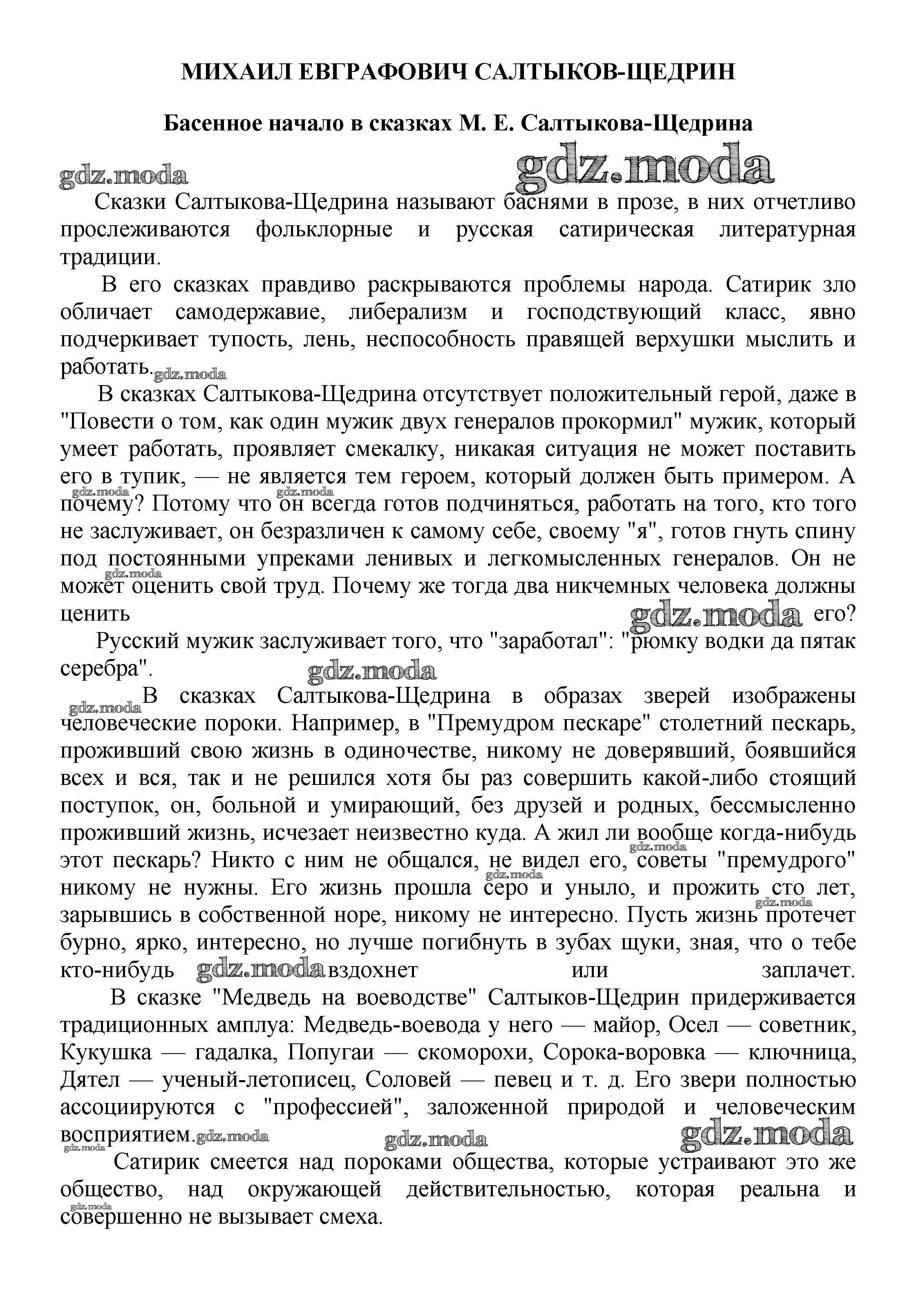 ГДЗ решение к заданию № Басенное начало в сказках М. Е. Салтыкова-Щедрина Сочинения по русской литературе, зарубежной литературе 5-10 классы Белик Э. В. Баро-Пресс 2017 бесплатно на гдз.мода!