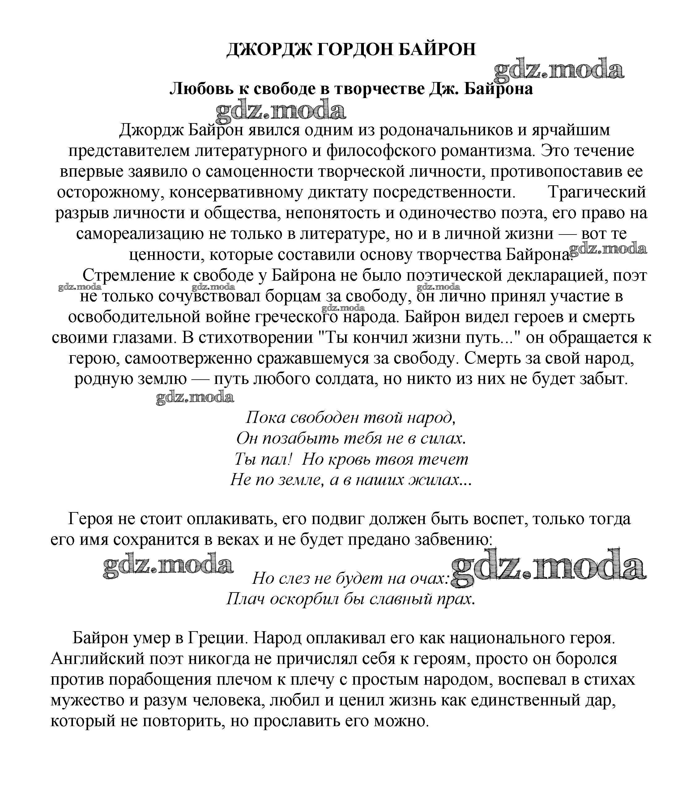 ГДЗ решение к заданию № Любовь к свободе в творчестве Дж. Байрона Сочинения по русской литературе, зарубежной литературе 5-10 классы Белик Э. В. Баро-Пресс 2017 бесплатно на гдз.мода!