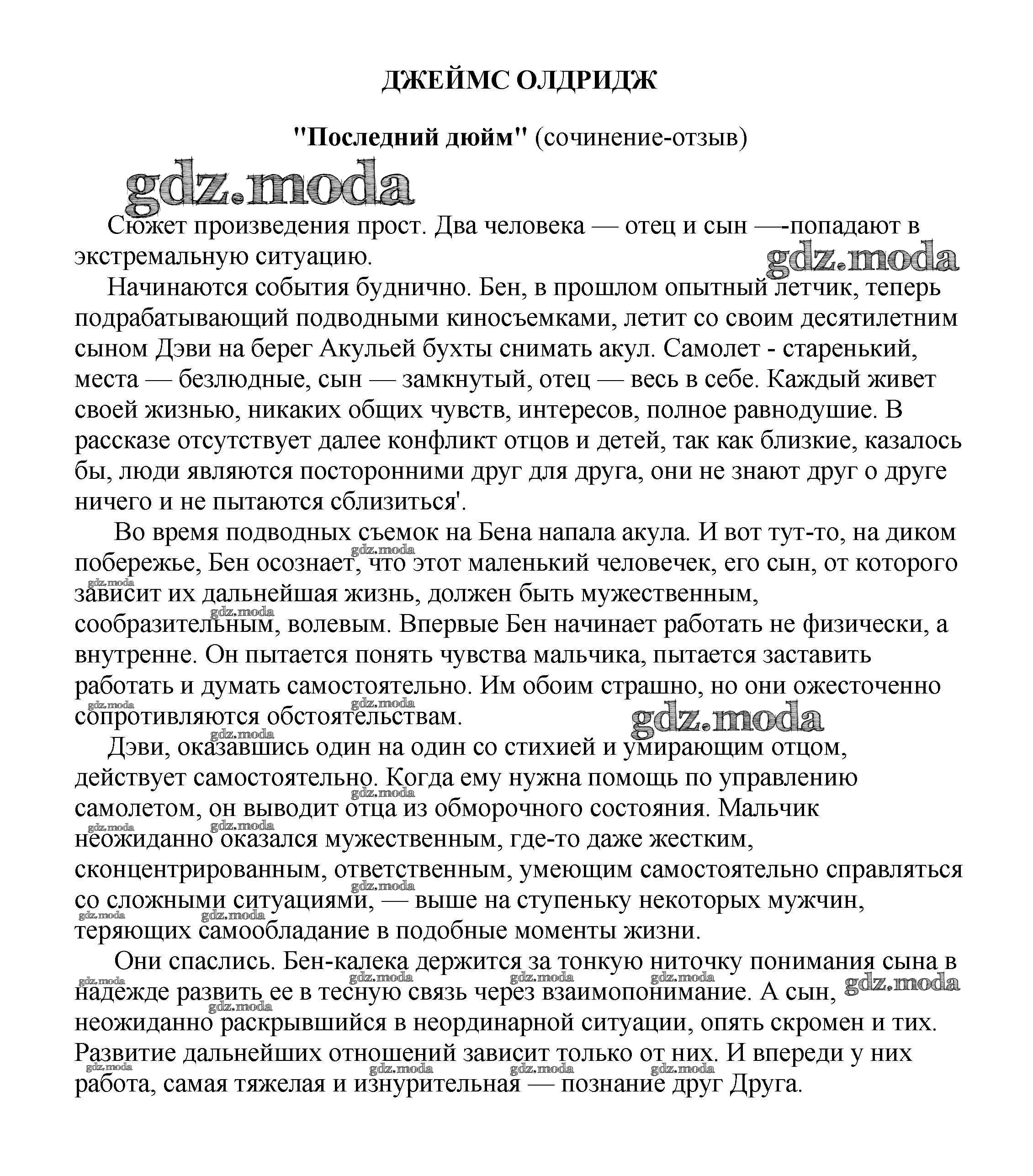 ГДЗ решение к заданию № "Последний дюйм" (сочинение-отзыв) Сочинения по русской литературе, зарубежной литературе 5-10 классы Белик Э. В. Баро-Пресс 2017 бесплатно на гдз.мода!