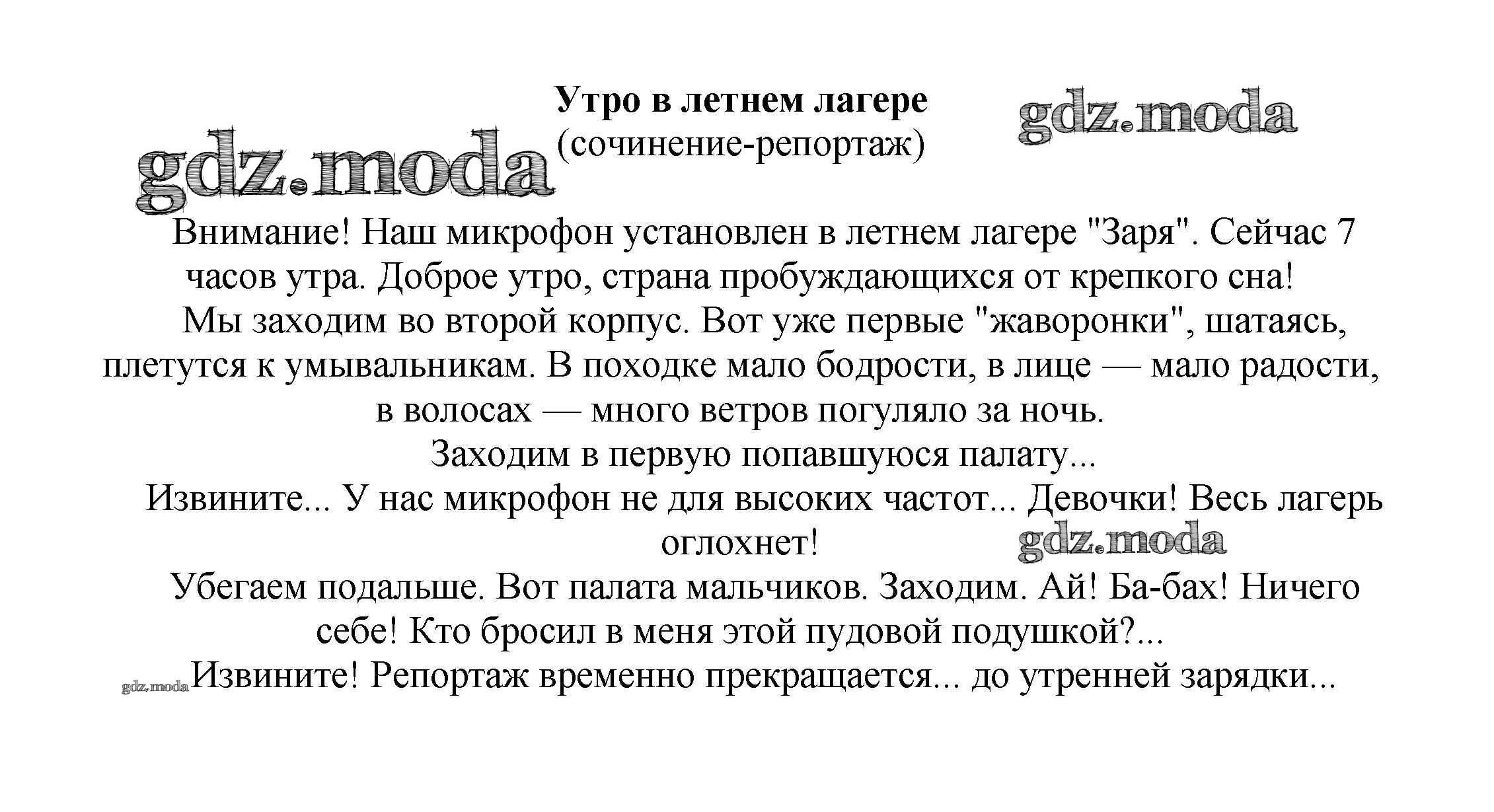 ГДЗ решение к заданию № Утро в летнем лагере (сочинение-репортаж) Сочинения по русской литературе, зарубежной литературе 5-10 классы Белик Э. В. Баро-Пресс 2017 бесплатно на гдз.мода!