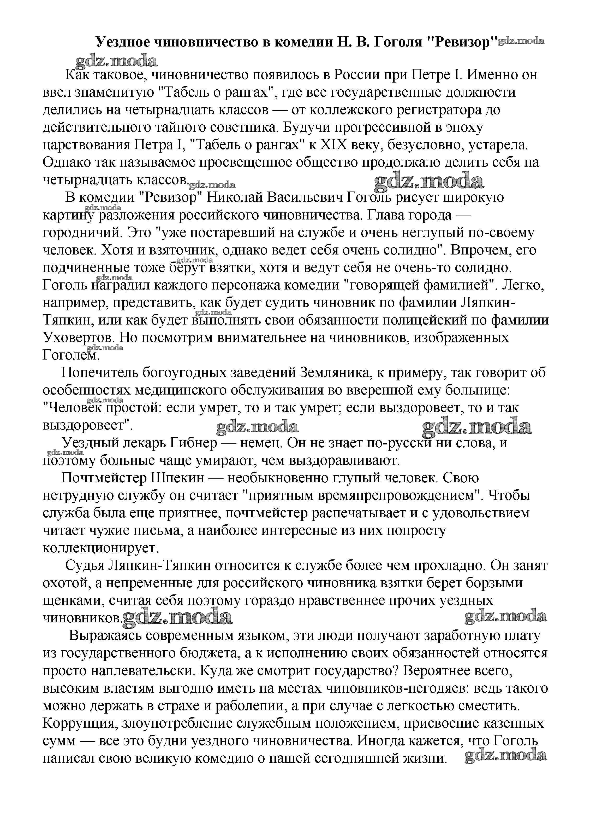 ГДЗ решение к заданию № Уездное чиновничество в комедии Н. В. Гоголя "Ревизор" Сочинения по русской литературе, зарубежной литературе 5-10 классы Белик Э. В. Баро-Пресс 2017 бесплатно на гдз.мода!