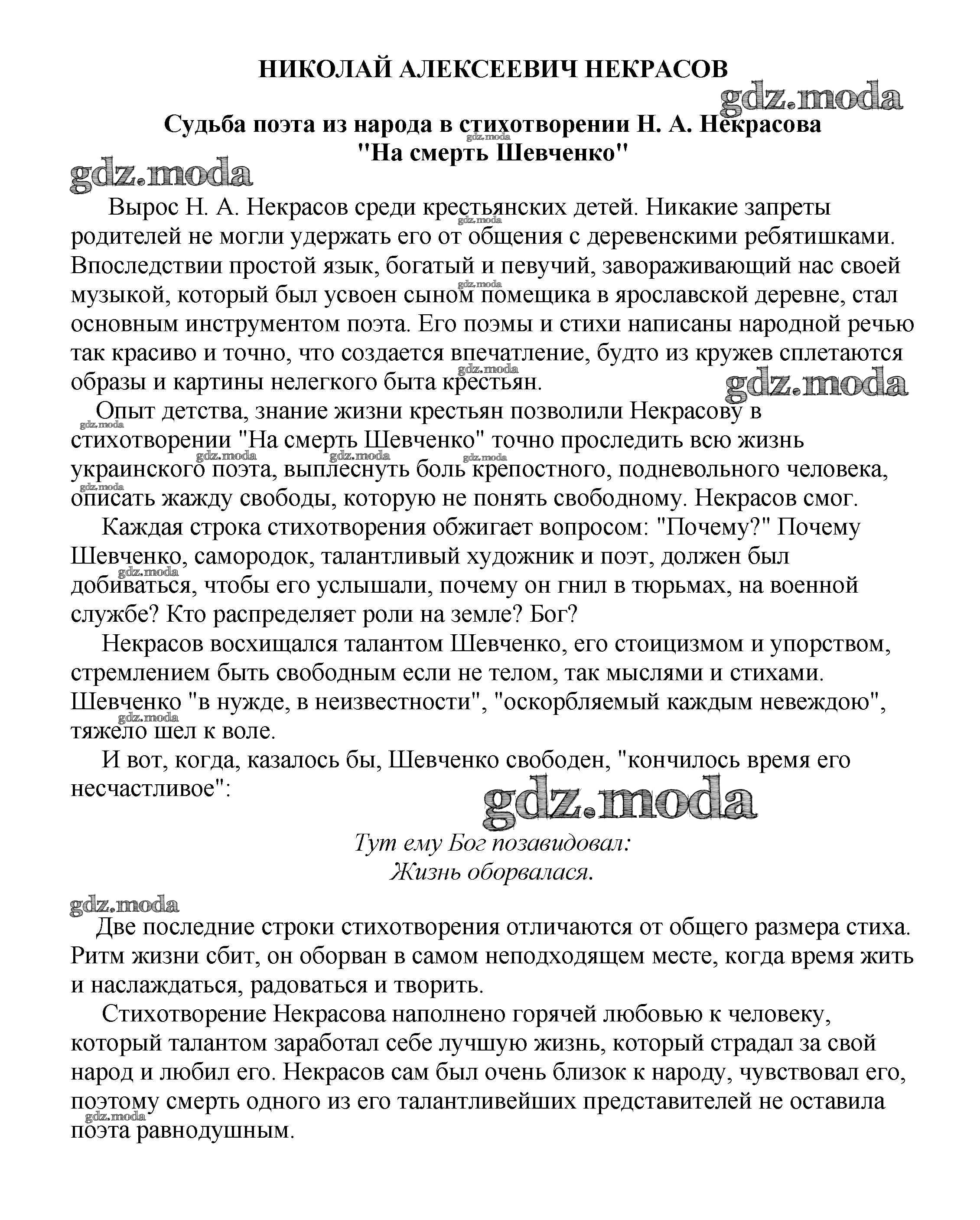ОТВЕТ на задание № Судьба поэта из народа в стихотворении Н. А. Некрасова "На смерть Шевченко Сочинения по Литературе 5-10 класс Белик