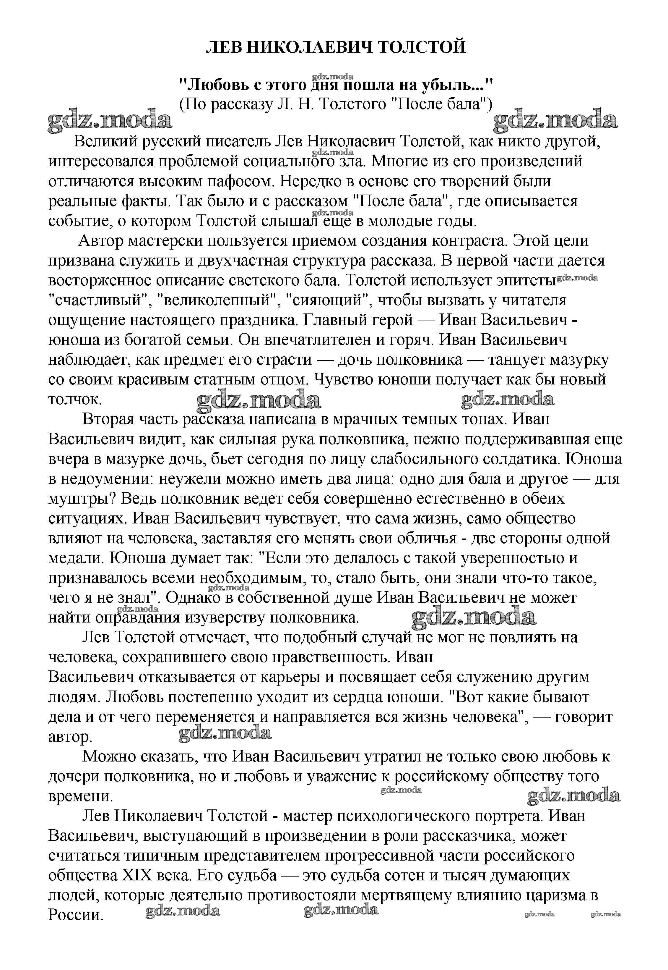 ОТВЕТ на задание № "Любовь с этого дня пошла на убыль..." (По рассказу Л. Н. Толстого "После бала") Сочинения по Литературе 5-10 класс Белик