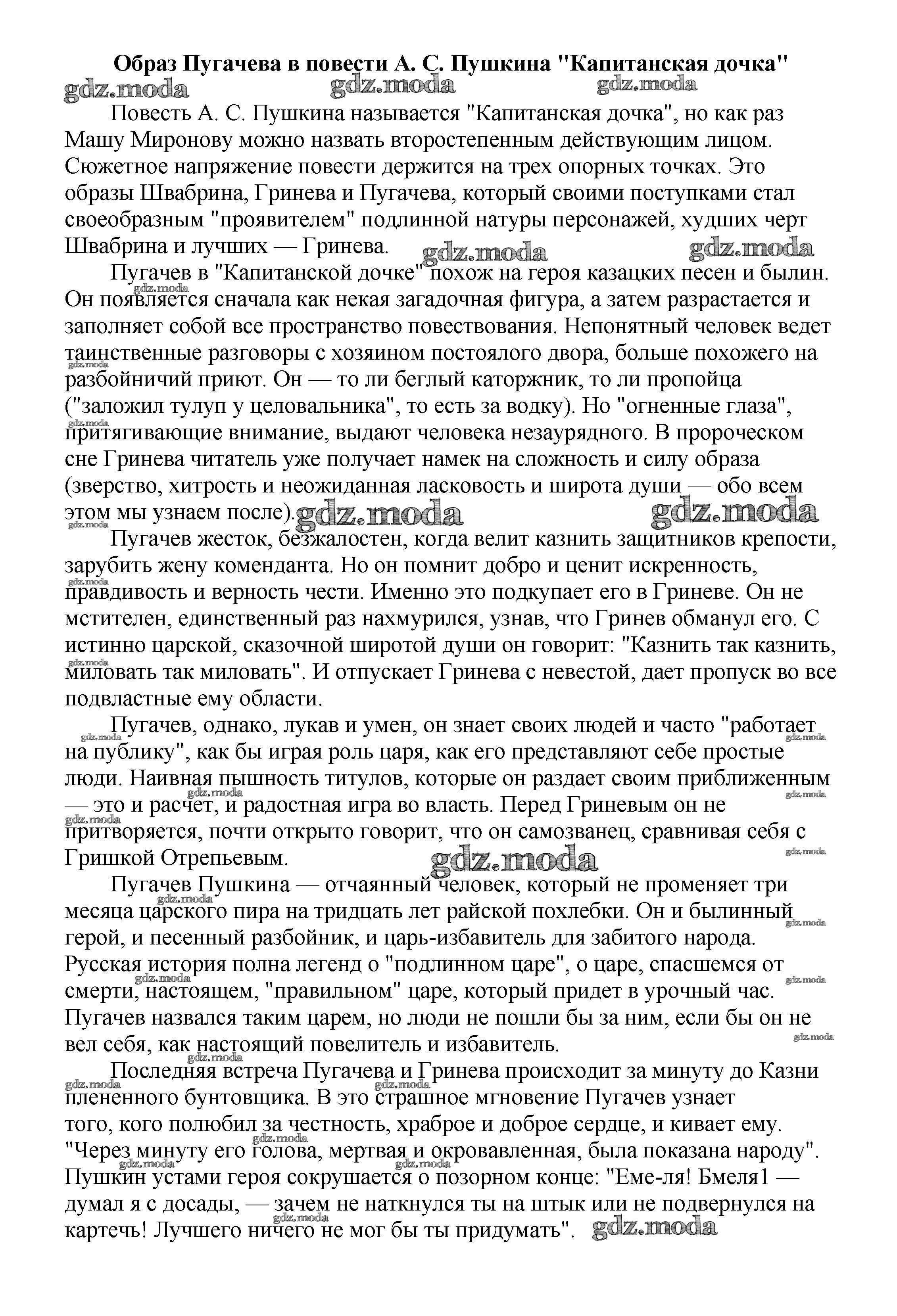 ГДЗ решение к заданию № Образ Пугачева в повести А. С. Пушкина "Капитанская дочка" Сочинения по русской литературе, зарубежной литературе 5-10 классы Белик Э. В. Баро-Пресс 2017 бесплатно на гдз.мода!