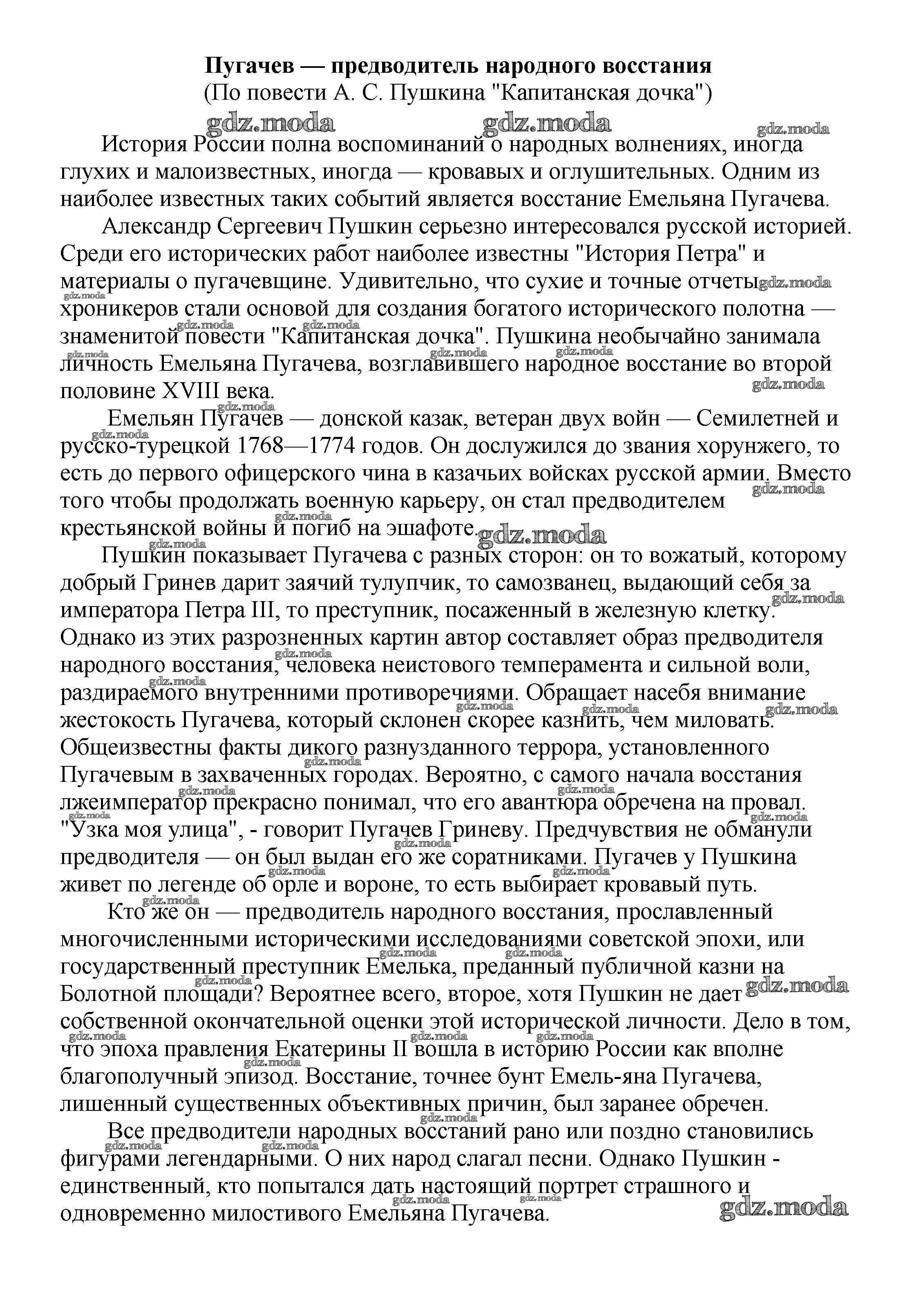 ОТВЕТ на задание № Пугачев — предводитель народного восстания (По повести А. С. Пушкина "Капитанская дочка") Сочинения по Литературе 5-10 класс Белик