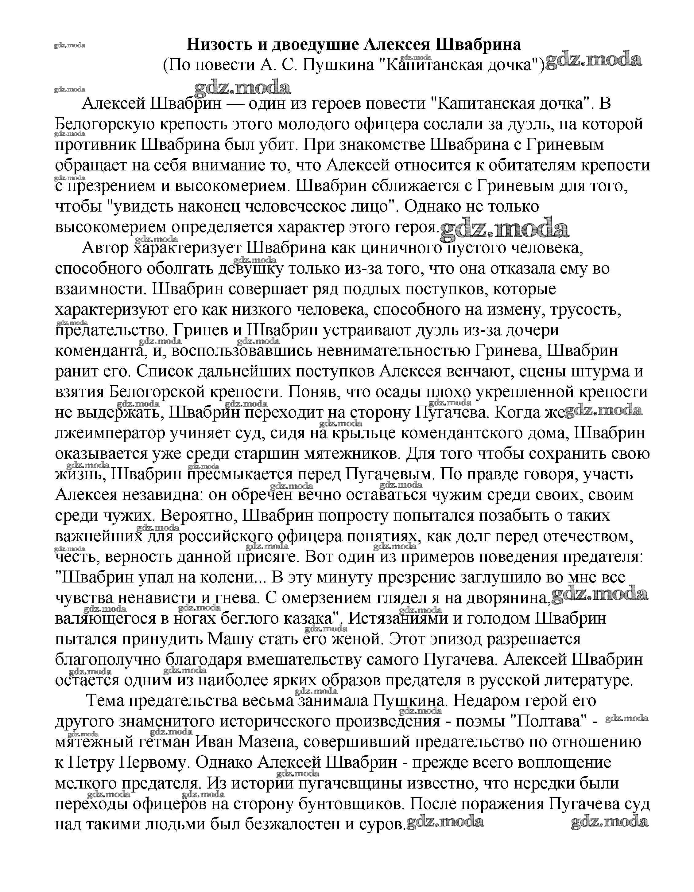 ГДЗ решение к заданию № Низость и двоедушие Алексея Швабрина (По повести А. С. Пушкина "Капитанская дочка") Сочинения по русской литературе, зарубежной литературе 5-10 классы Белик Э. В. Баро-Пресс 2017 бесплатно на гдз.мода!