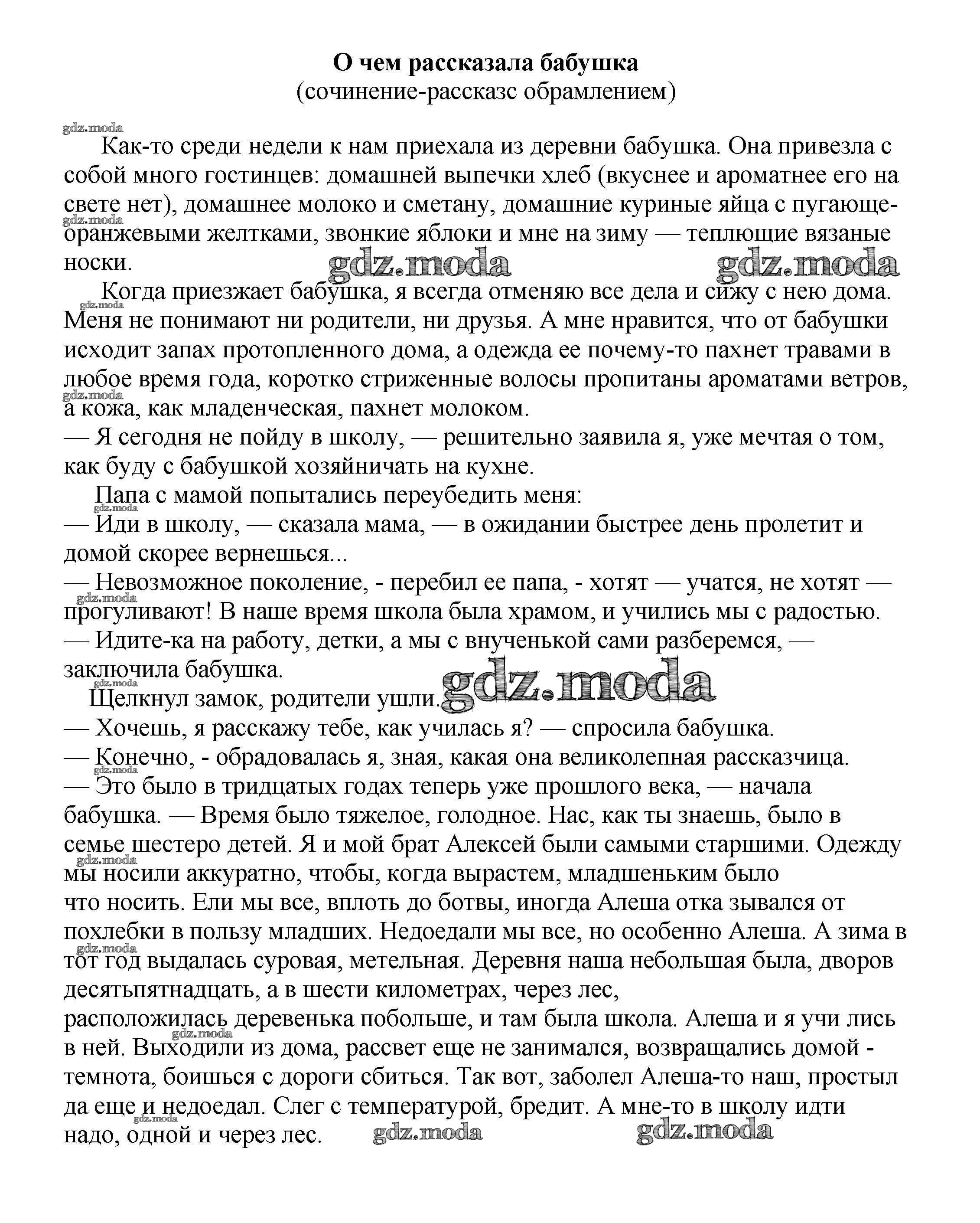 ГДЗ решение к заданию № О чем рассказала бабушка (сочинение-рассказс обрамлением Сочинения по русской литературе, зарубежной литературе 5-10 классы Белик Э. В. Баро-Пресс 2017 бесплатно на гдз.мода!