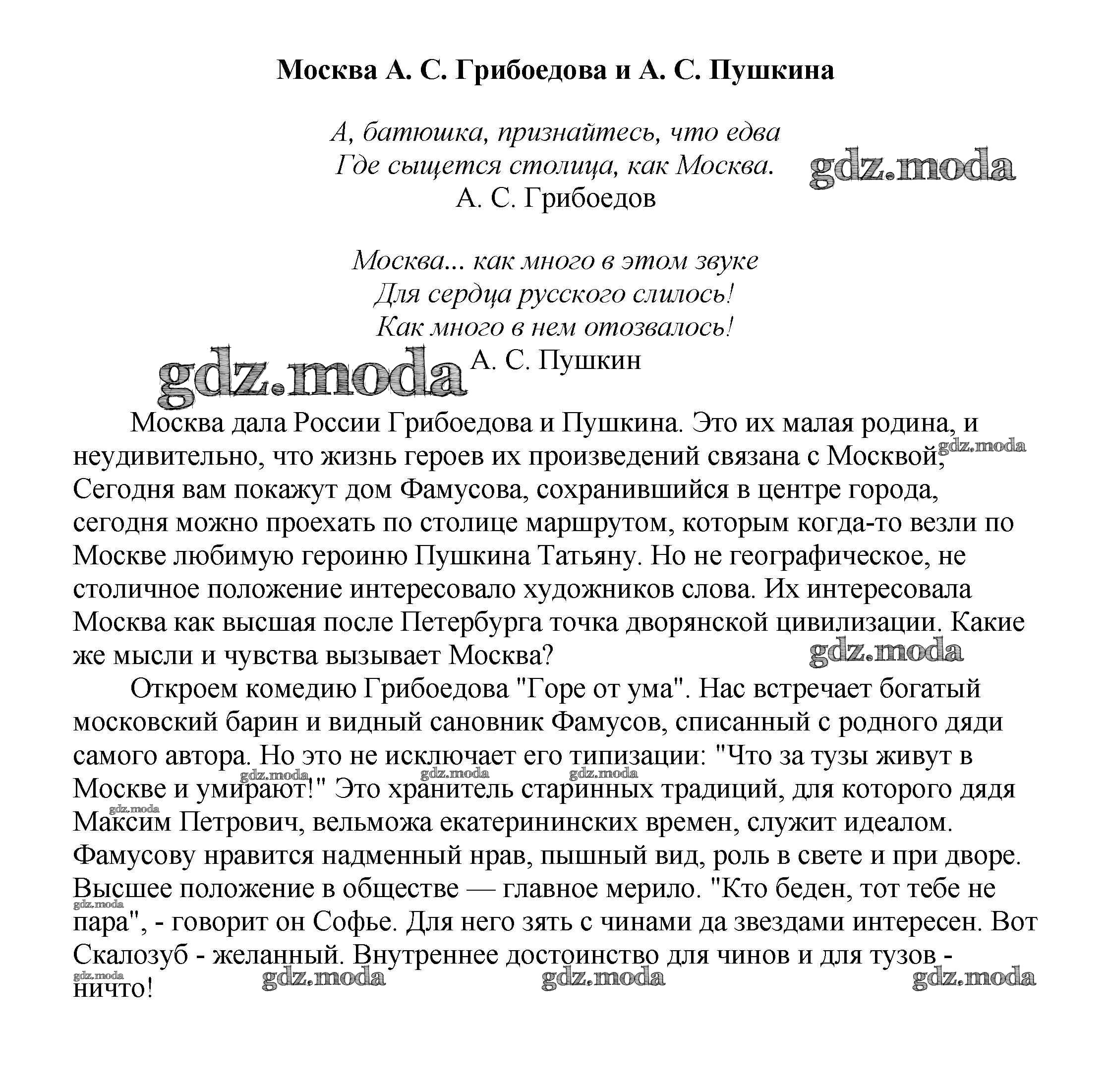 ГДЗ решение к заданию № Москва А. С. Грибоедова и А. С. Пушкина Сочинения по русской литературе, зарубежной литературе 5-10 классы Белик Э. В. Баро-Пресс 2017 бесплатно на гдз.мода!