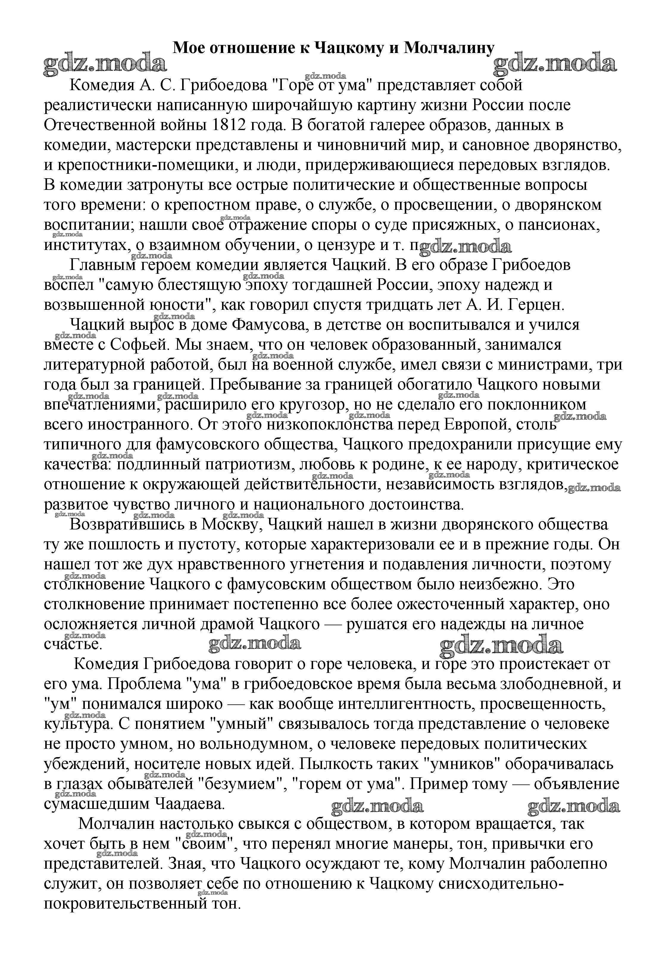 ОТВЕТ на задание № Мое отношение к Чацкому и Молчалину Сочинения по Литературе 5-10 класс Белик