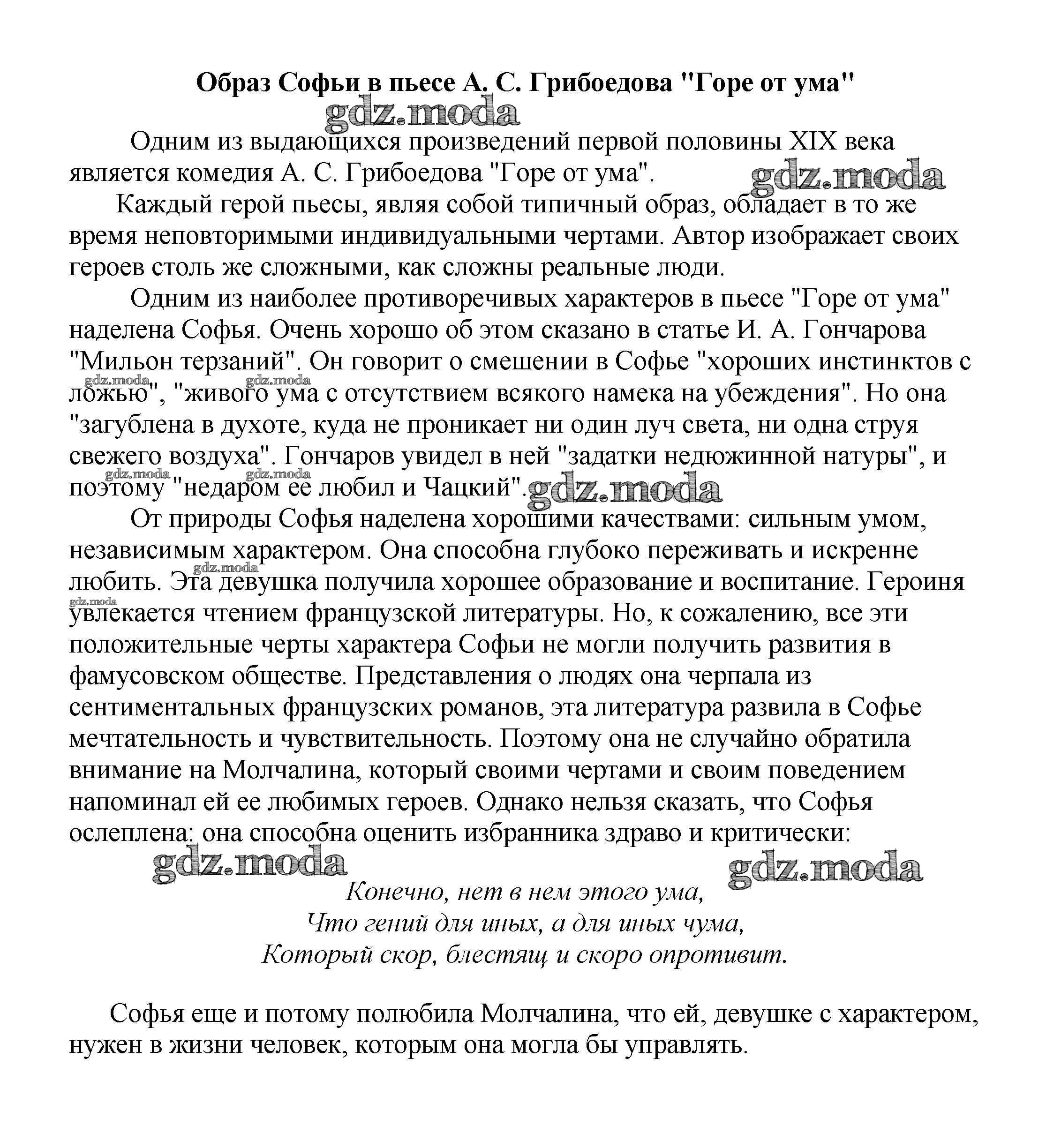 ГДЗ решение к заданию № Образ Софьи в пьесе А. С. Грибоедова "Горе от ума Сочинения по русской литературе, зарубежной литературе 5-10 классы Белик Э. В. Баро-Пресс 2017 бесплатно на гдз.мода!