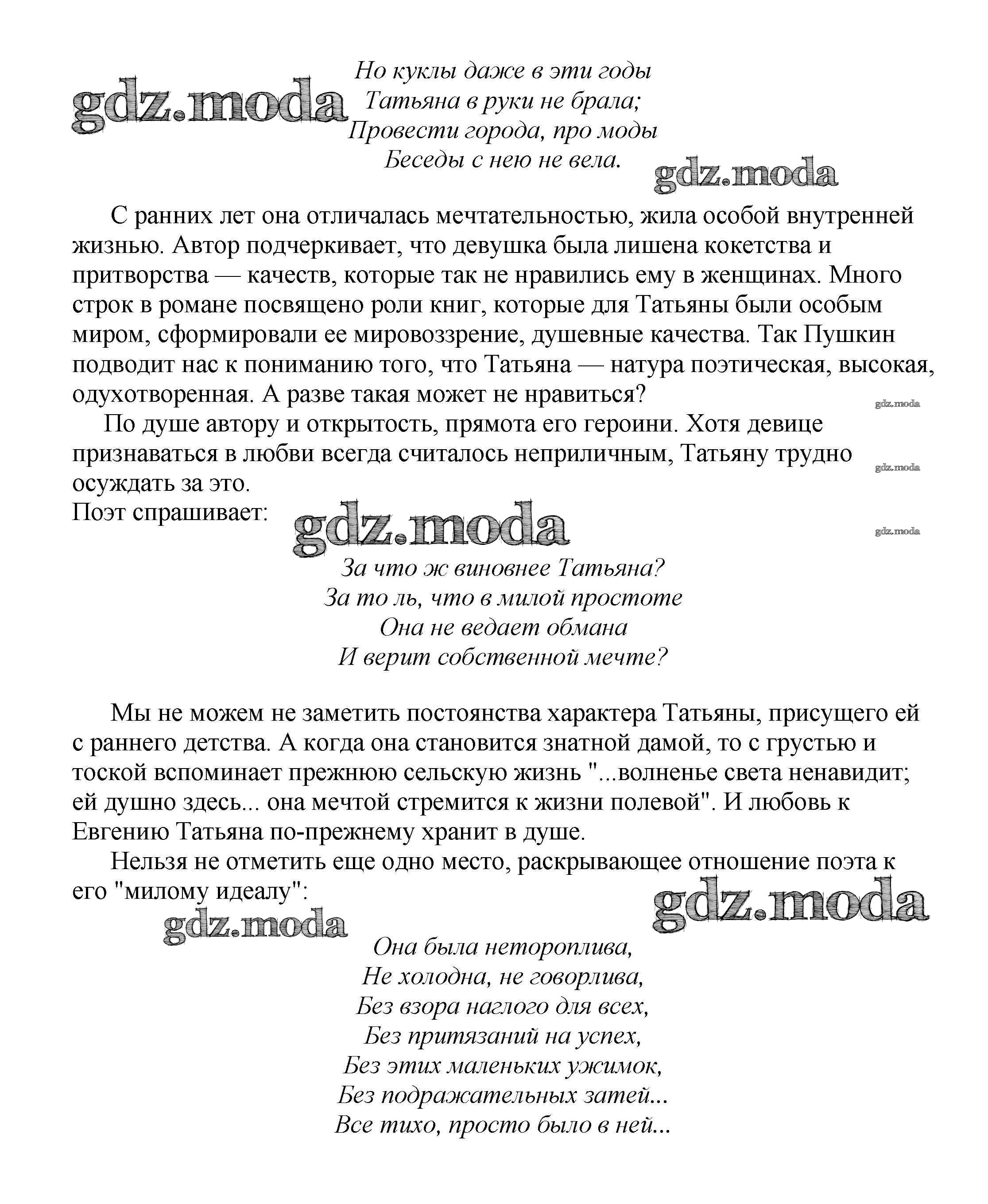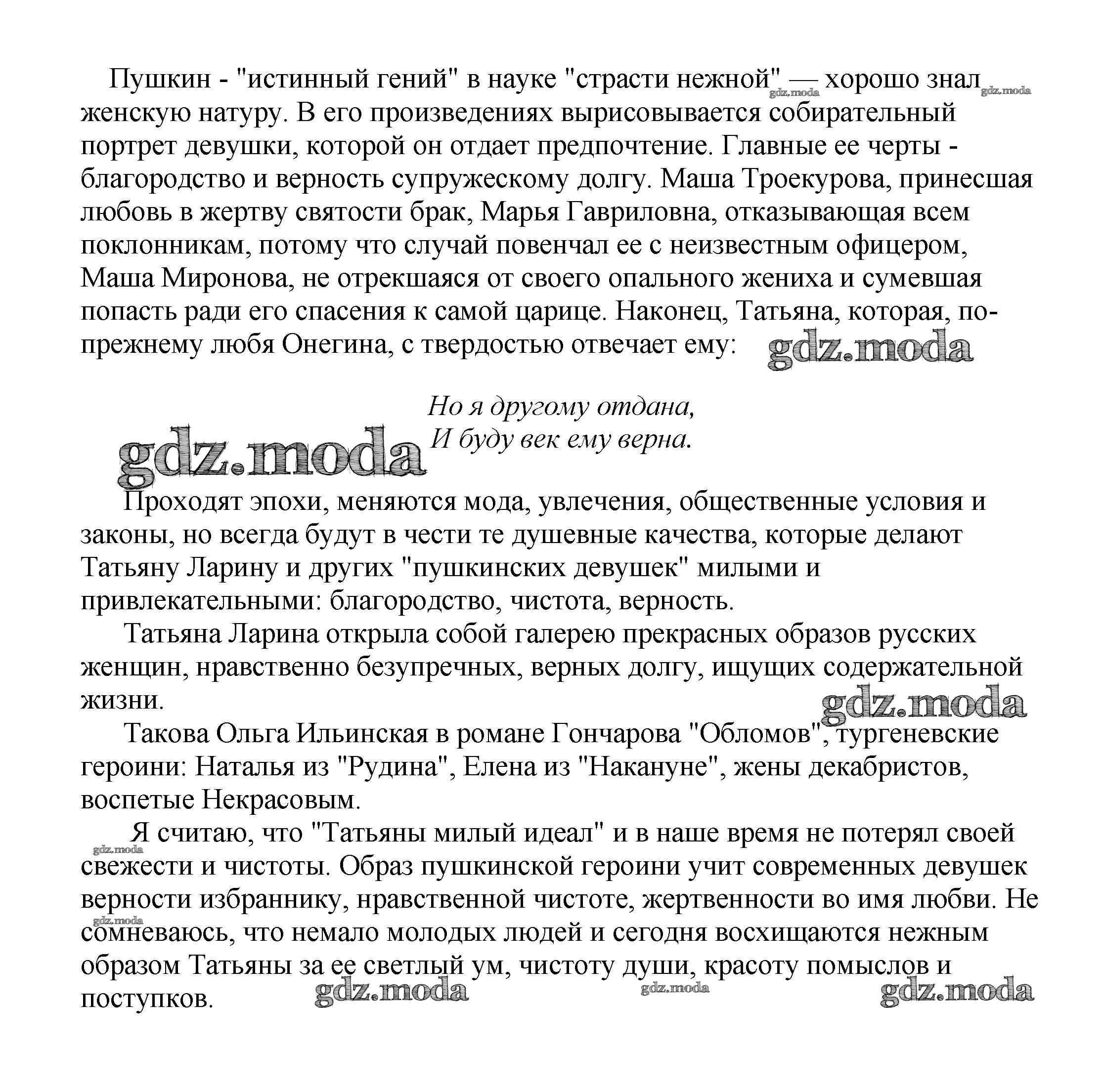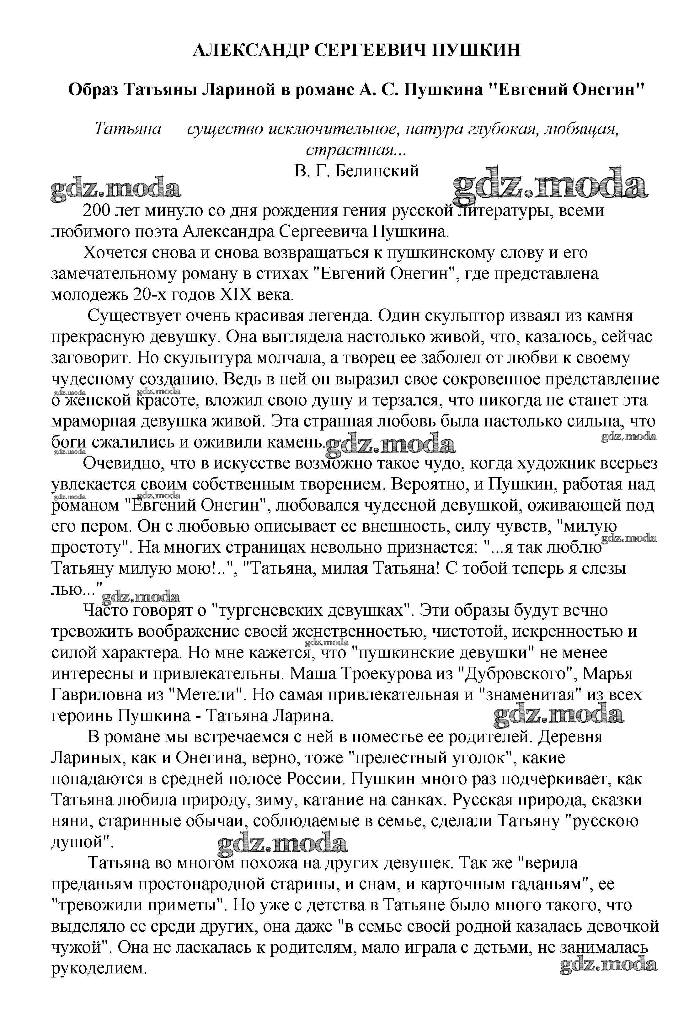 ГДЗ решение к заданию № Образ Татьяны Лариной в романе А. С. Пушкина "Евгений Онегин" Сочинения по русской литературе, зарубежной литературе 5-10 классы Белик Э. В. Баро-Пресс 2017 бесплатно на гдз.мода!