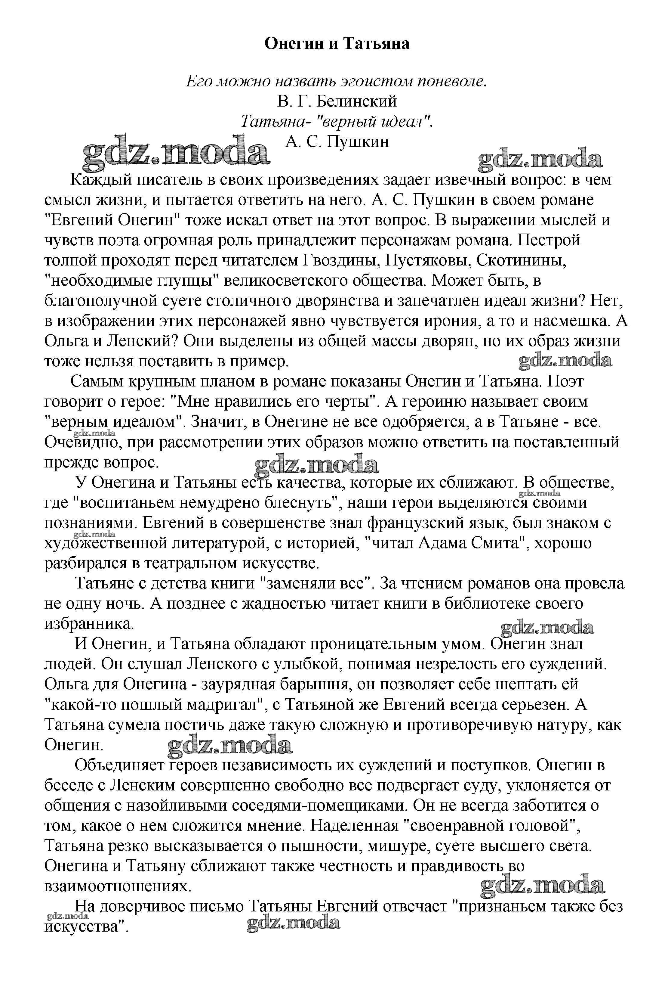 ГДЗ решение к заданию № Онегин и Татьяна Сочинения по русской литературе, зарубежной литературе 5-10 классы Белик Э. В. Баро-Пресс 2017 бесплатно на гдз.мода!