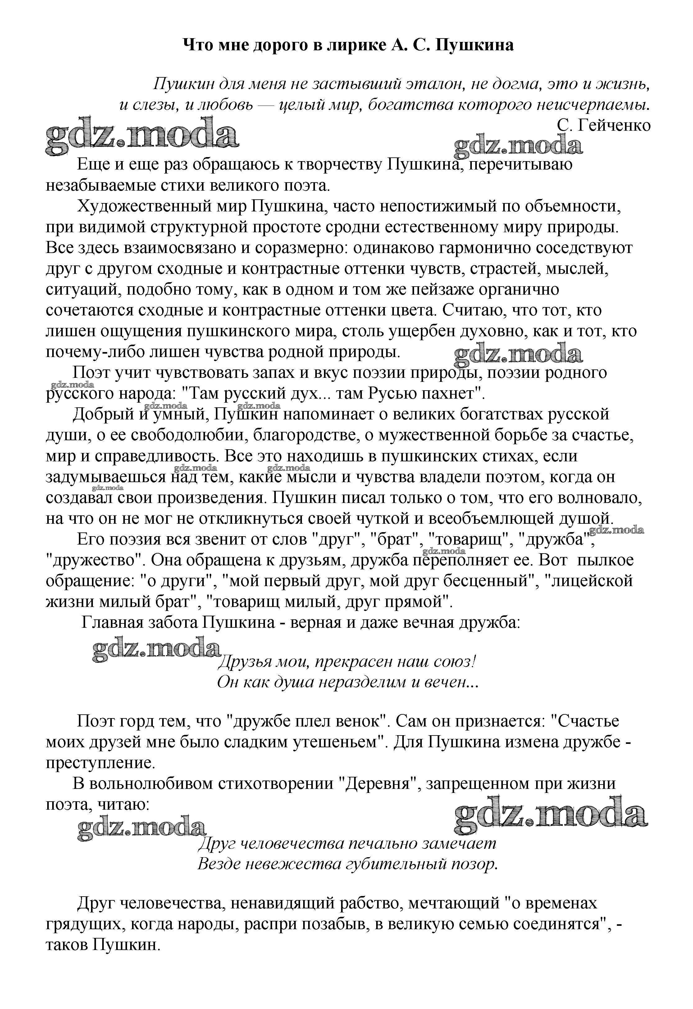 ГДЗ решение к заданию № Что мне дорого в лирике А. С. Пушкина Сочинения по русской литературе, зарубежной литературе 5-10 классы Белик Э. В. Баро-Пресс 2017 бесплатно на гдз.мода!