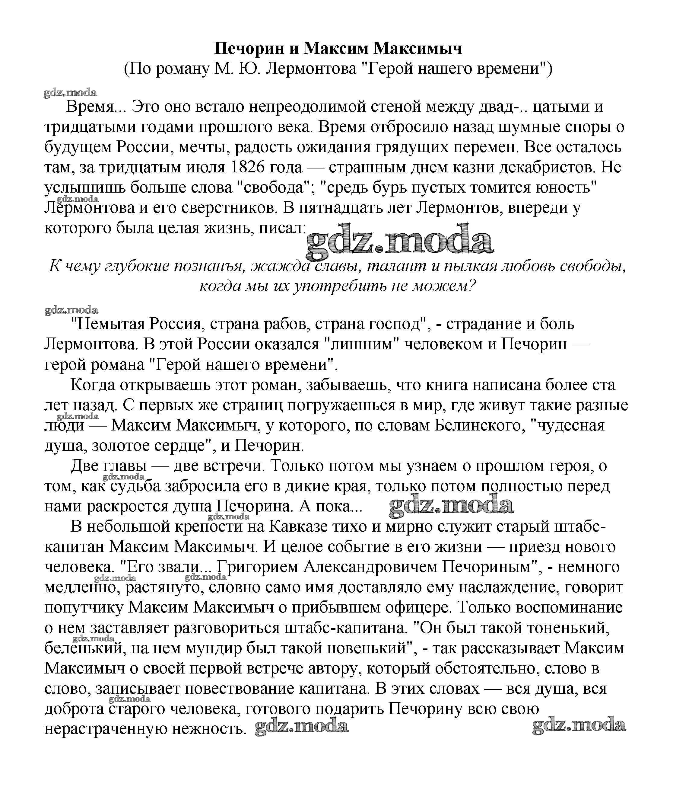 ОТВЕТ на задание № Печорин и Максим Максимыч (По роману М. Ю. Лермонтова "Герой нашего времени") Сочинения по Литературе 5-10 класс Белик